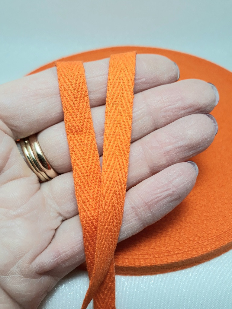 Wytrzymała, naturalna taśma bawełniana o splocie jodełkowym – idealna do szycia toreb, plecaków, akcesoriów oraz wykończeń odzieży. Miękka, trwała.