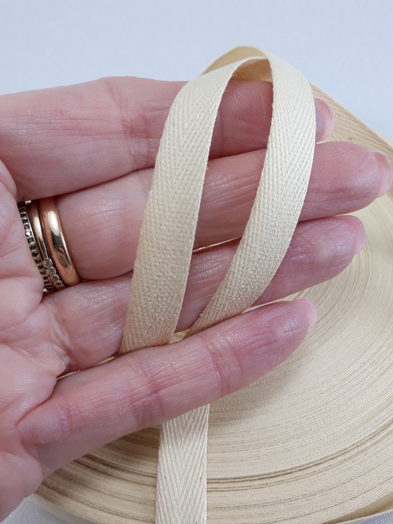 Taśma bawełniana jodełka to wysokiej jakości, naturalna taśma introligatorska i krawiecka, idealna do szycia, wykończeń oraz tworzenia akcesoriów handmade. Wykonana w 100% z mocnej bawełny, zapewnia dużą wytrzymałość na rozciąganie i ścieranie, a charakterystyczny splot „jodełka” nadaje jej estetyczny, elegancki wygląd.