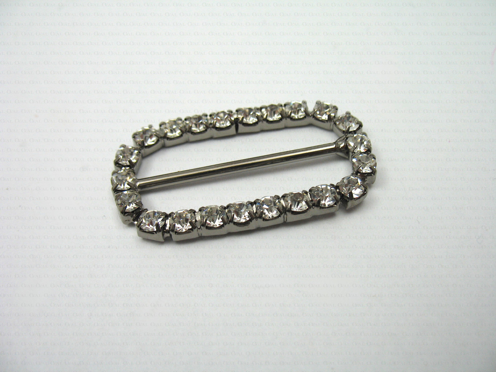 Ozdobna klamerka, plastikowa, metalizowana z dżetami w kolorze Ciemny nikiel. Może również służyć jako regulator długości.