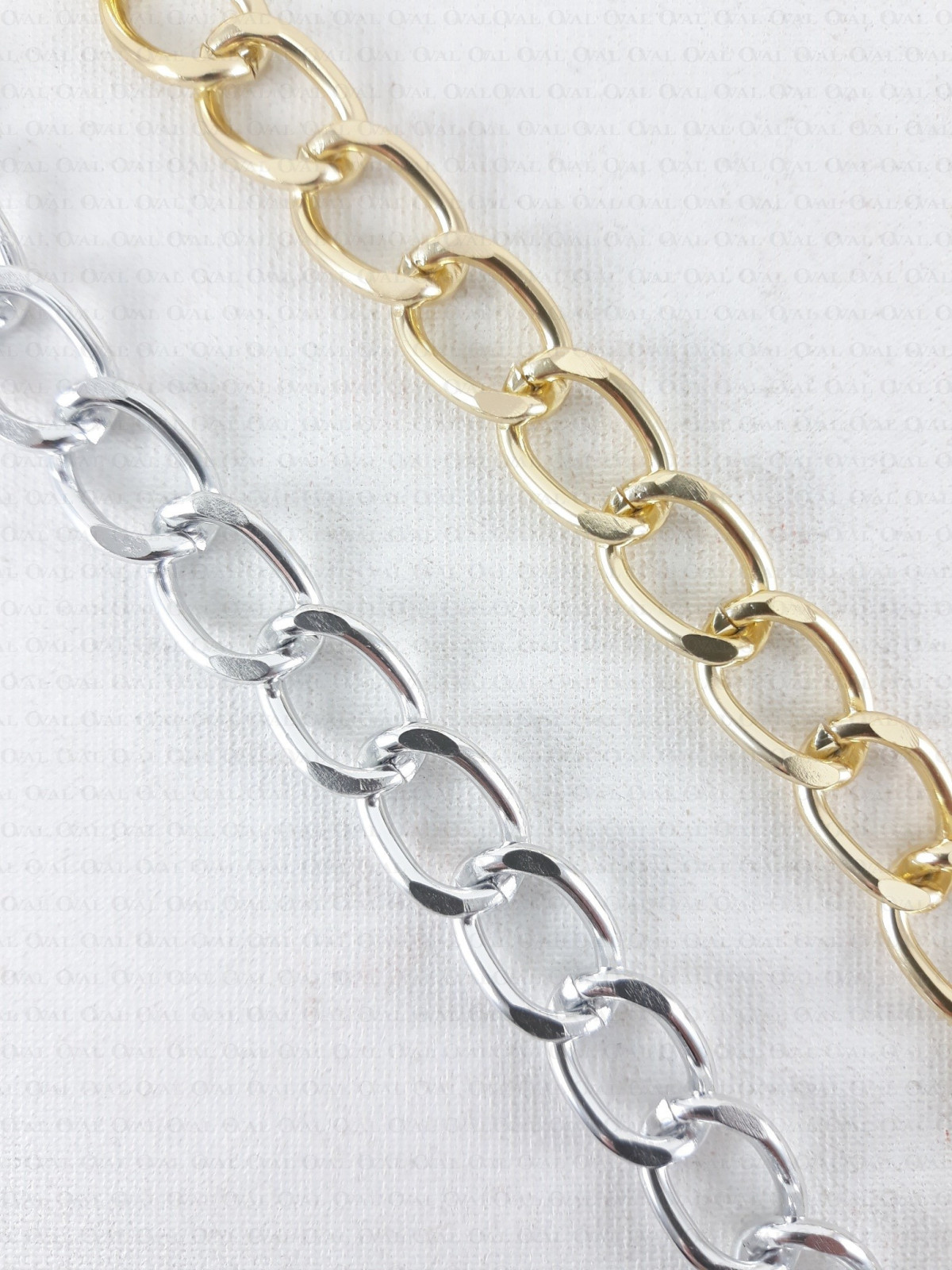 Łańcuch metalowy dostępny w kolorze srebrnym oraz złotym