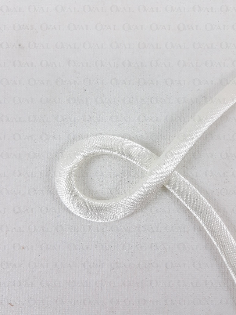Atłasowa lamówka typu makaron, doskonale układająca się po łuku.