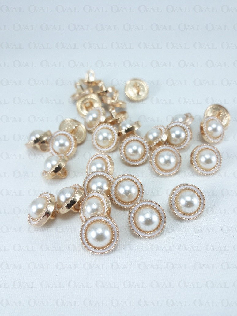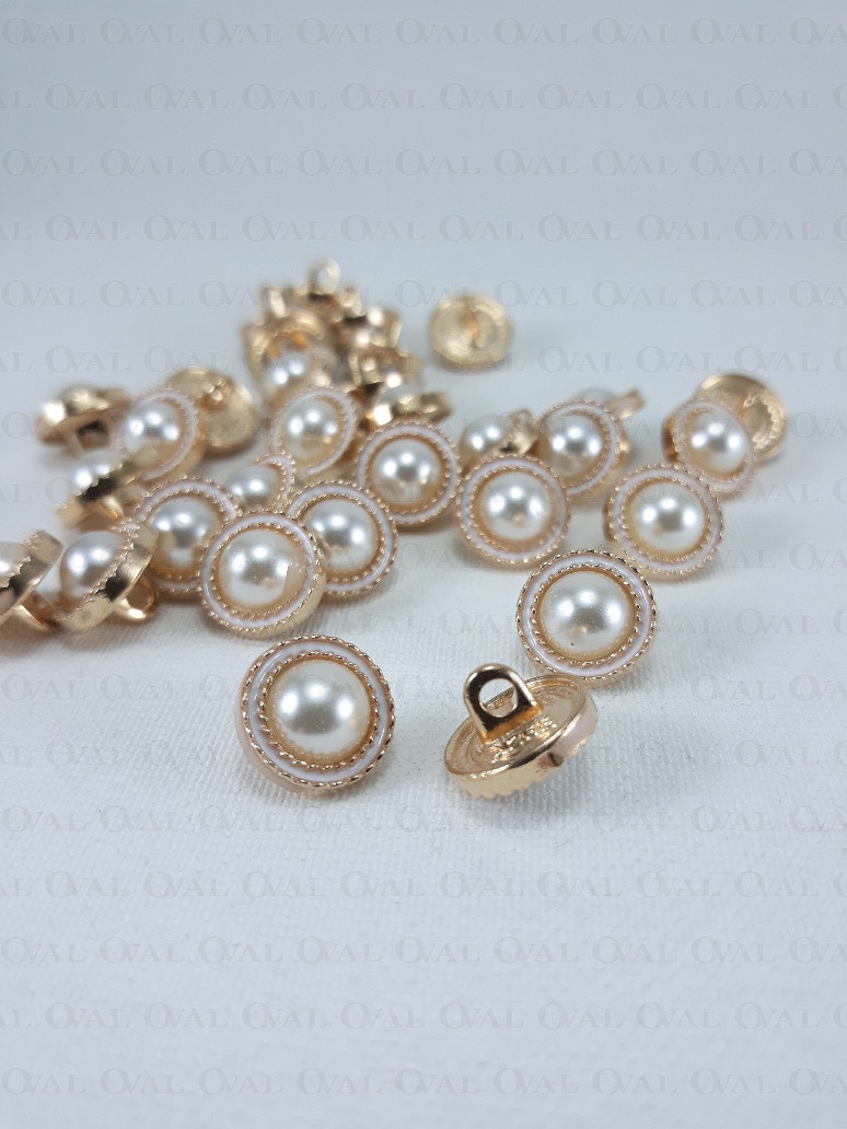 Guzik metalowy z perłowym oczkiem .