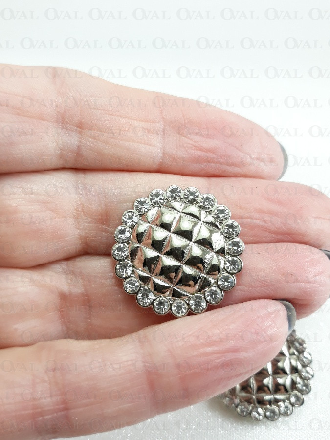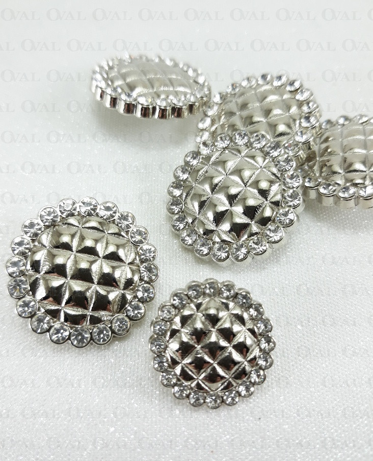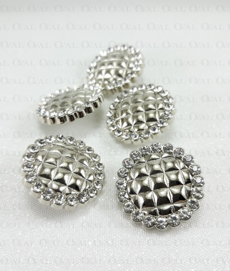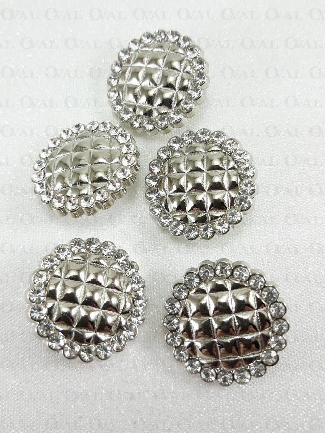 Guzik metalowy na stopce, wytłaczany z dżetami