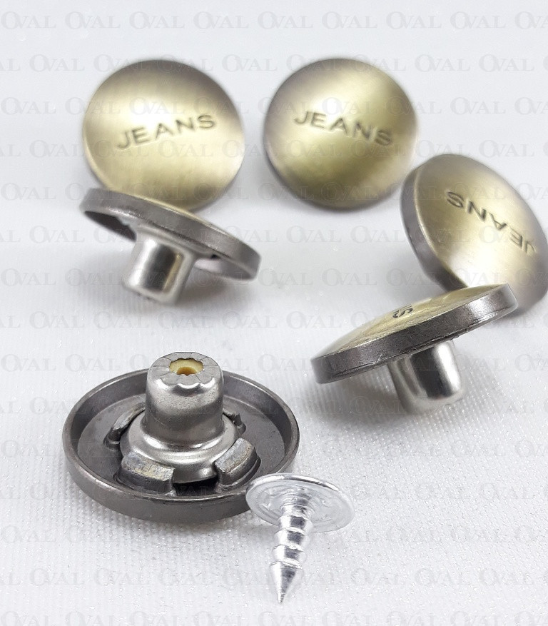 Metalowy, matowy guzik najczęściej stosowany do jeansowej odzieży.