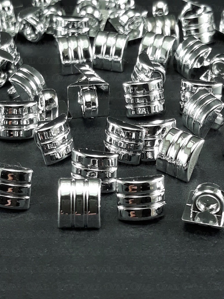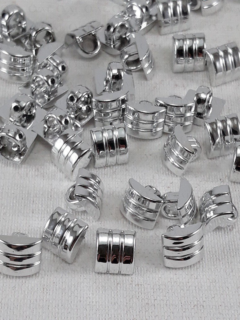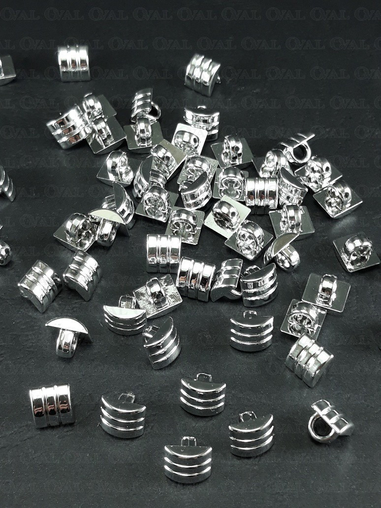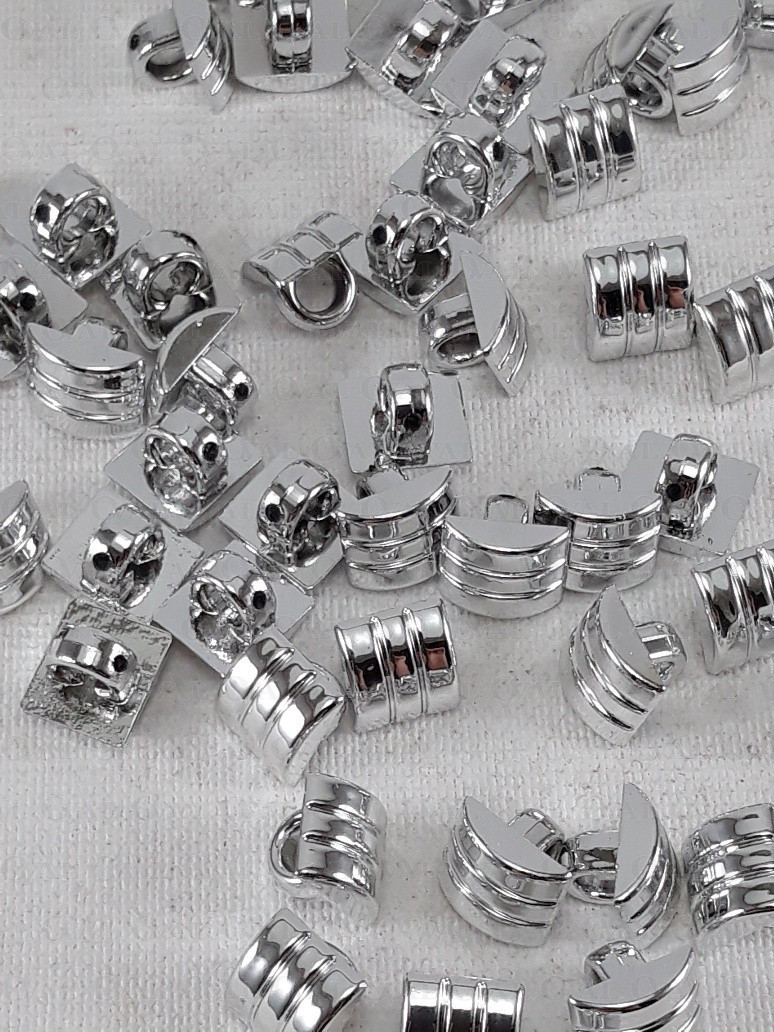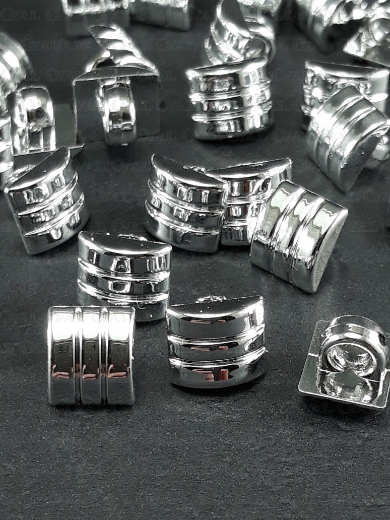 Guzik plastikowy metalizowany ,kwadratowy w kolorze srebrnym z intensywnym połyskiem.