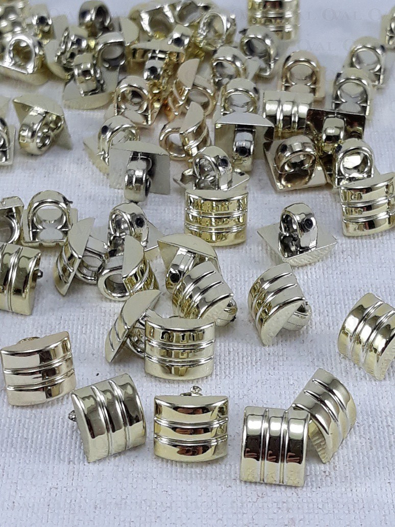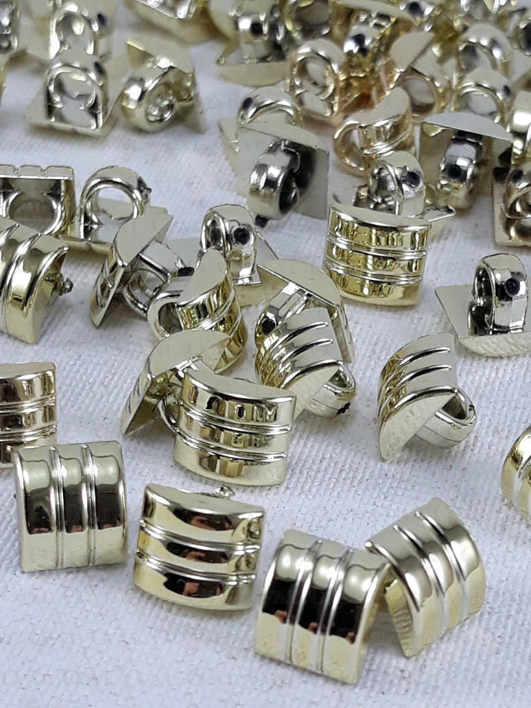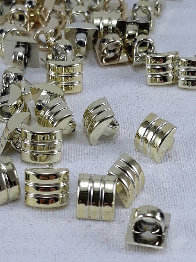 Guzik plastikowy metalizowany ,kwadratowy w kolorze złotym z intensywnym połyskiem.