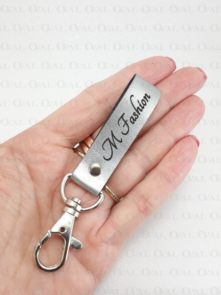 Przedstawiamy państwu przykładową zawieszkę z własnym logo i karabińczykiem.