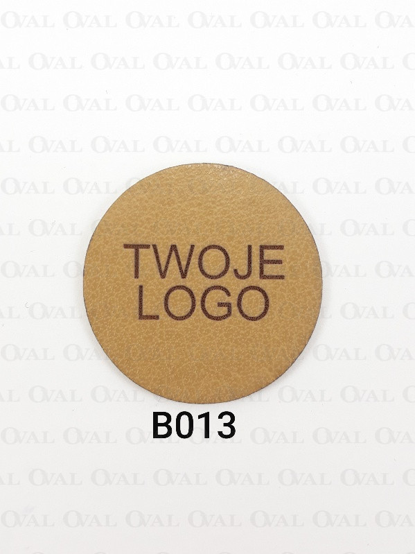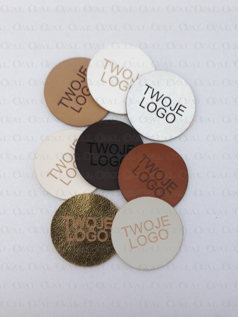 Skórka, naszywka ekologiczna w kształcie koła z własnym logo.