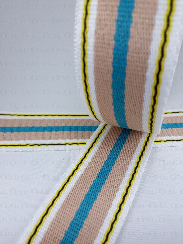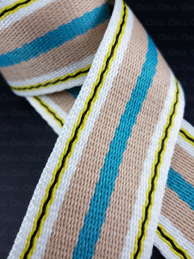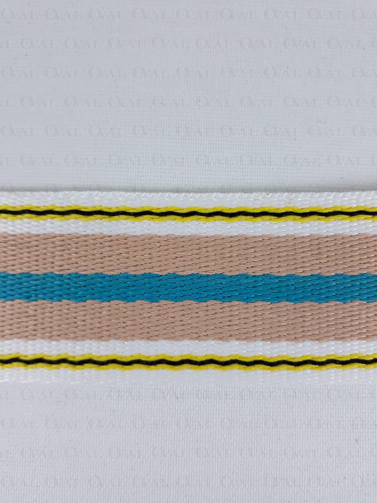 Kolor:biała taśma z beżem,turkusem,żółcią i czernią