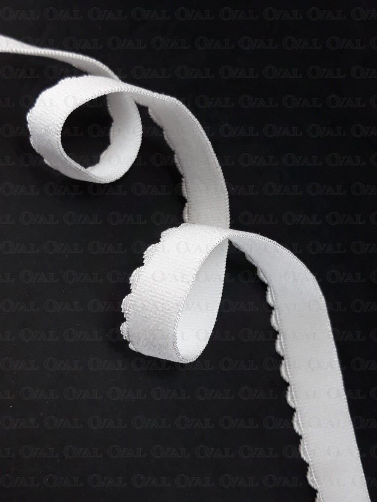 Guma bieliźniana, obszywkowa z ozdobnym brzegiem biała.