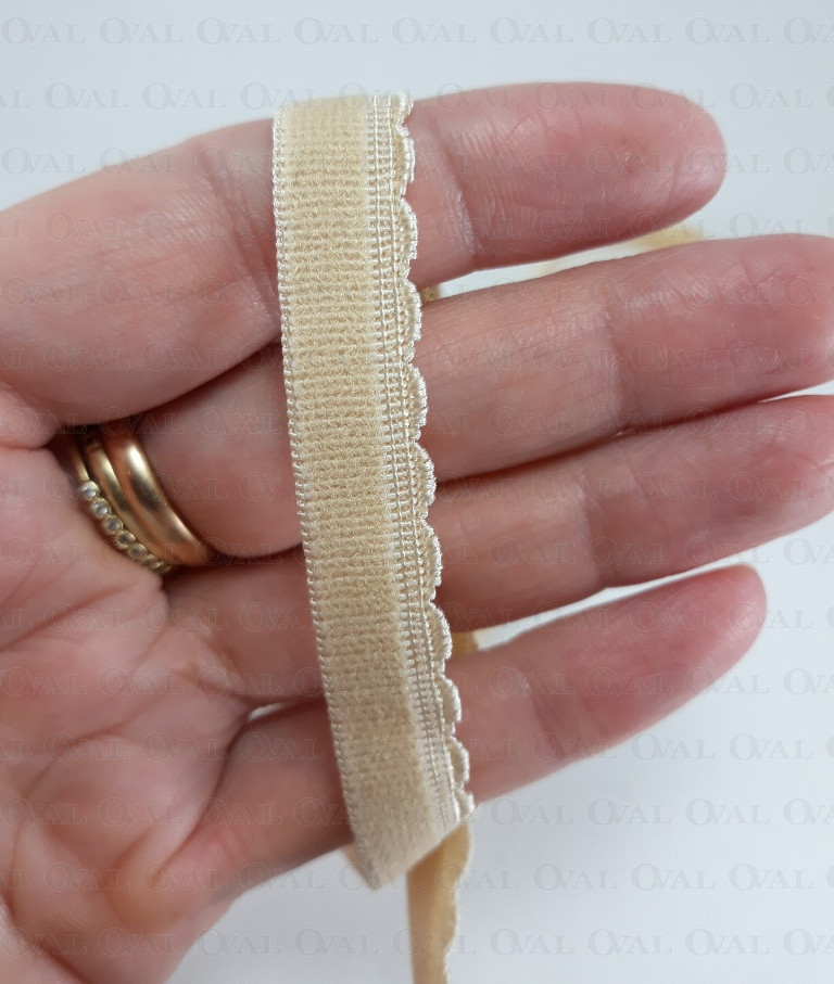Guma bieliźniana, obszywkowa z ozdobnym brzegiem.