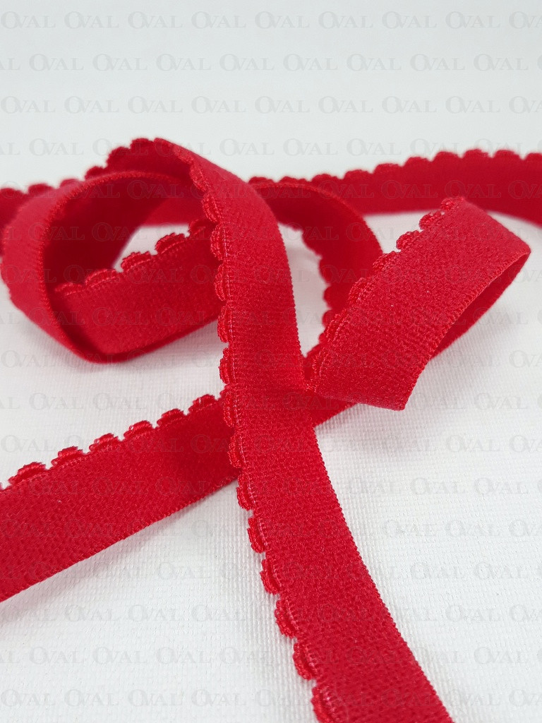 Guma bieliźniana, obszywkowa z ozdobnym brzegiem.