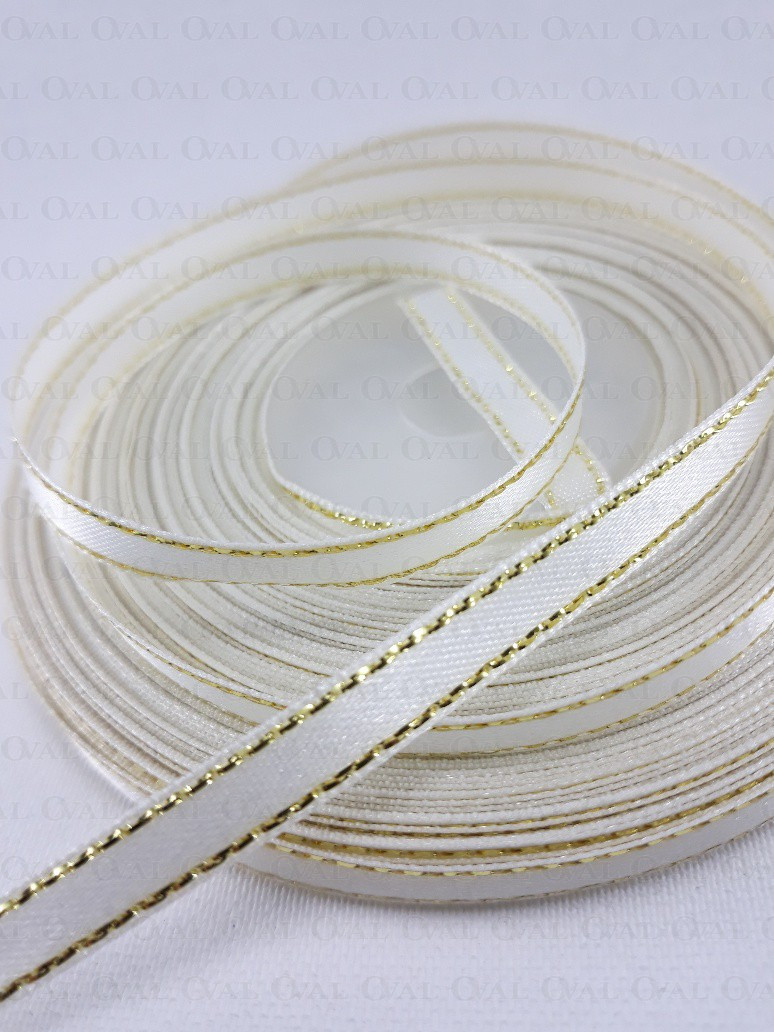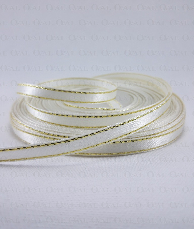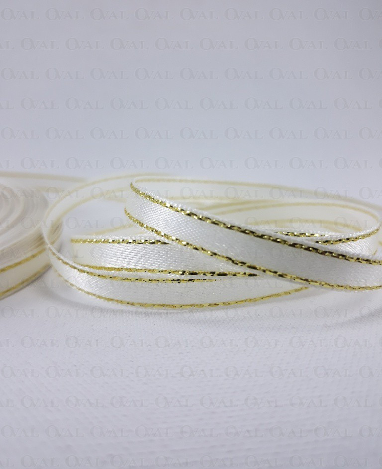 Tasiemka atłasowa ze złotymi paskami na brzegach.