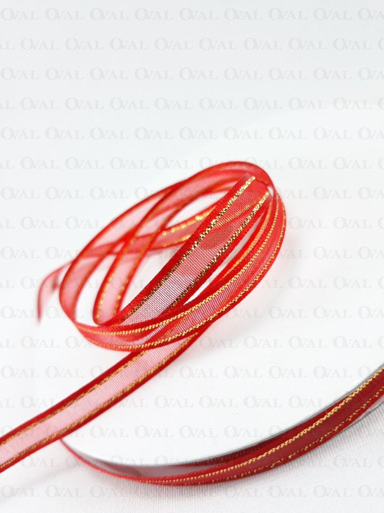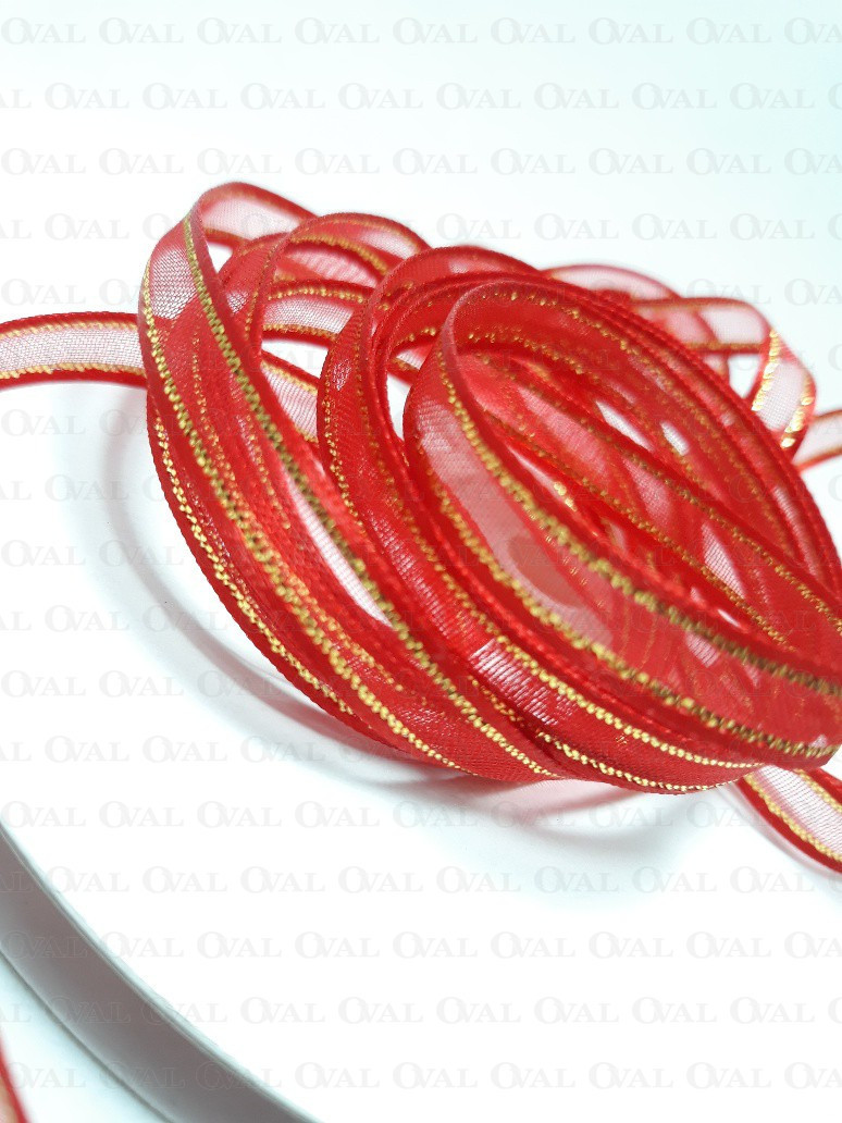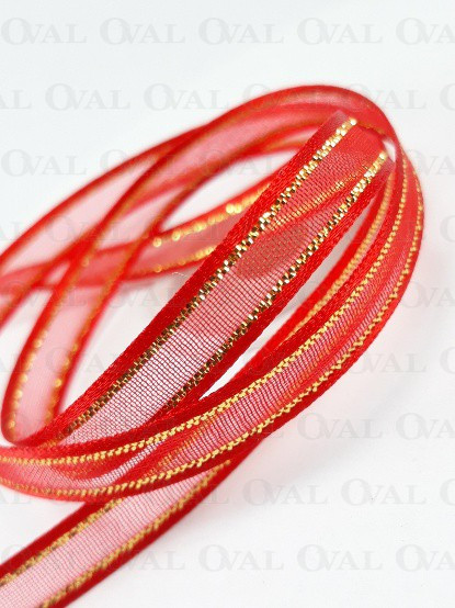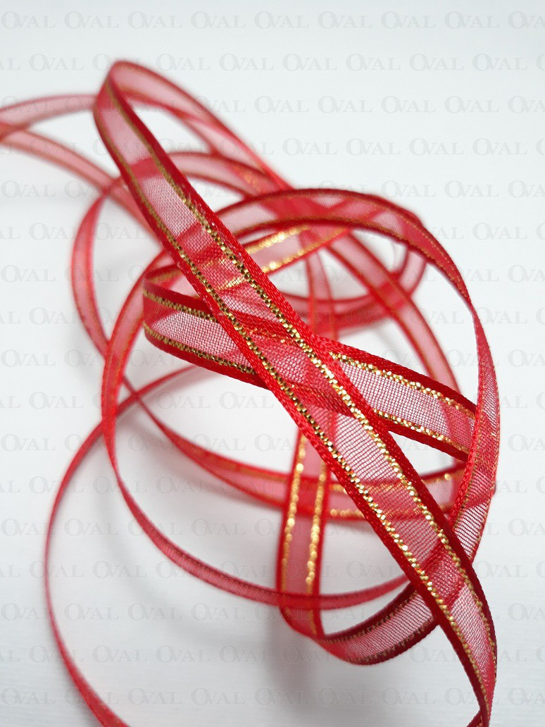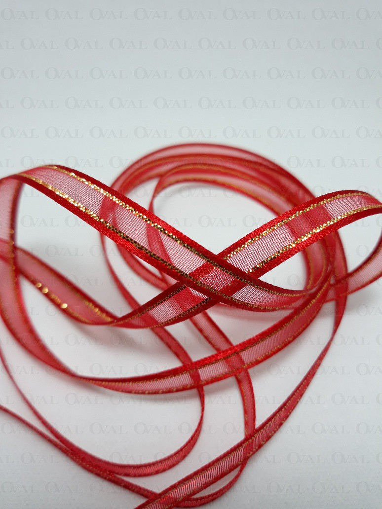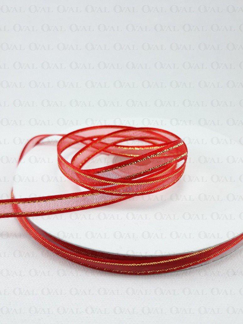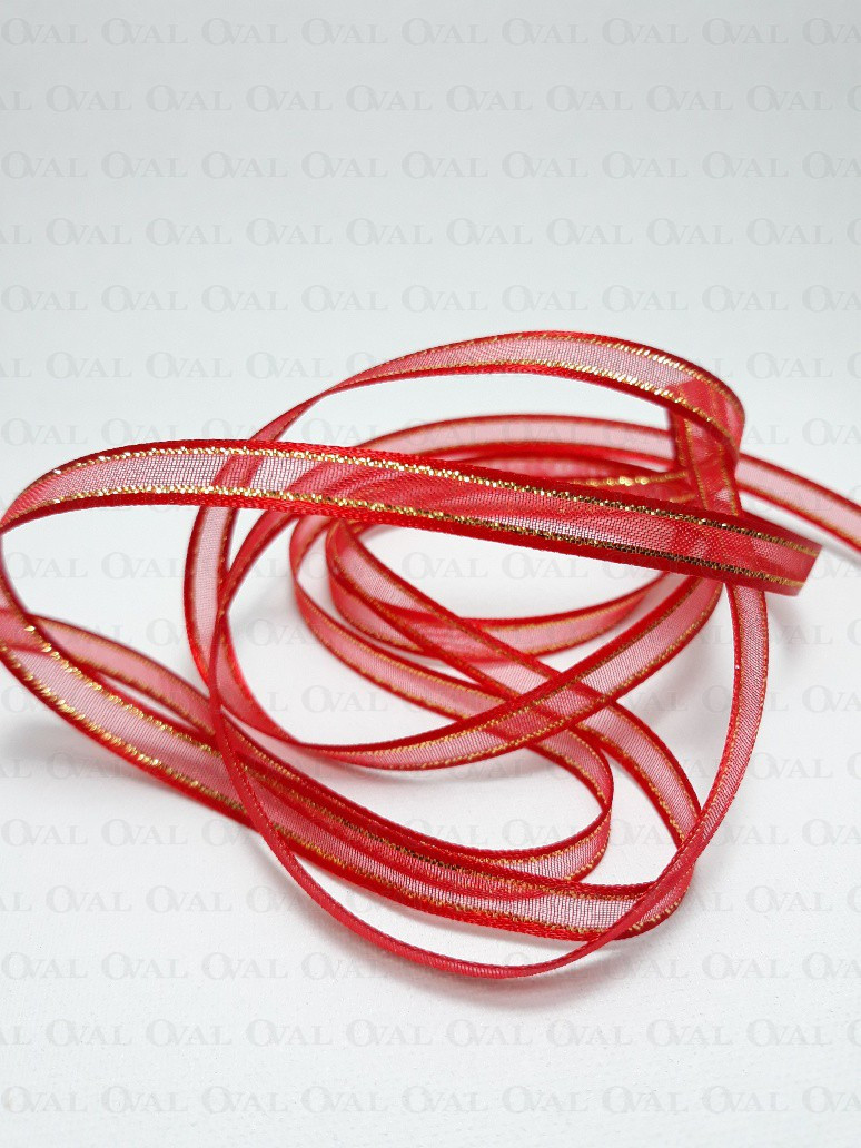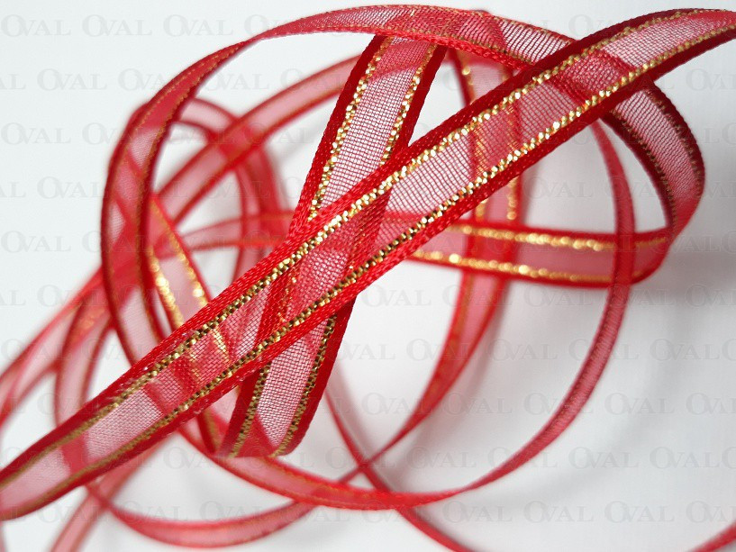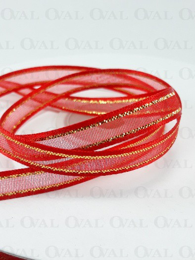 Tasiemka Szyfonowa 6mm/50y czerwono złota 3547
