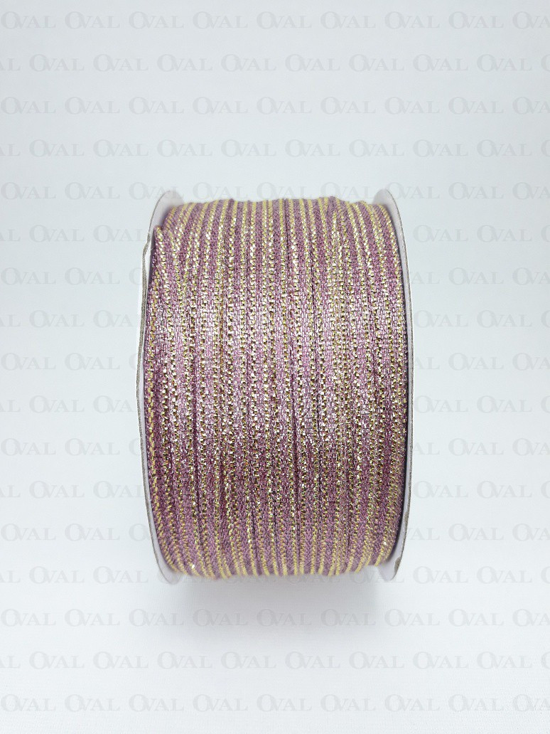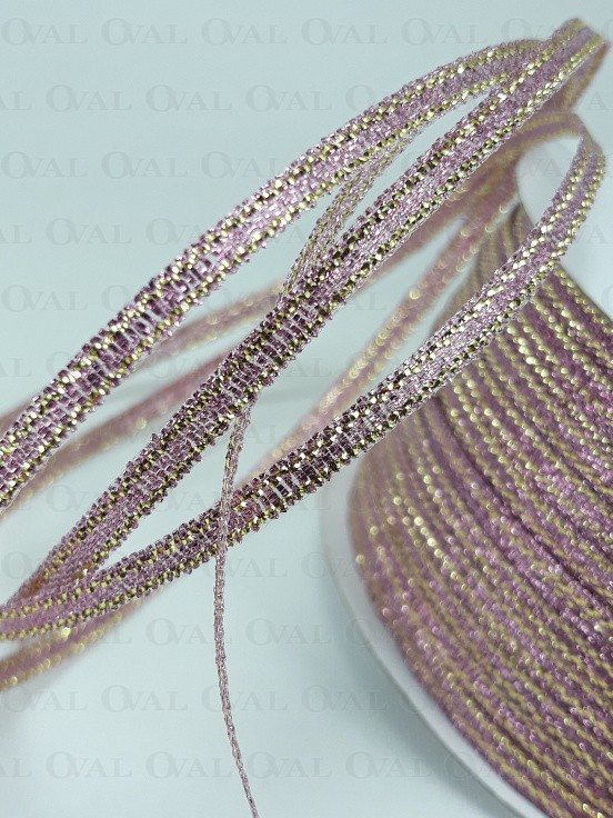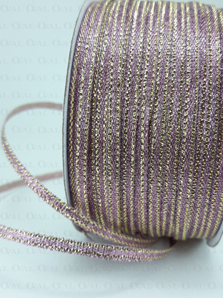 Ozdobna wstążka w kolorze brudnego różu ze złotym lureksem.