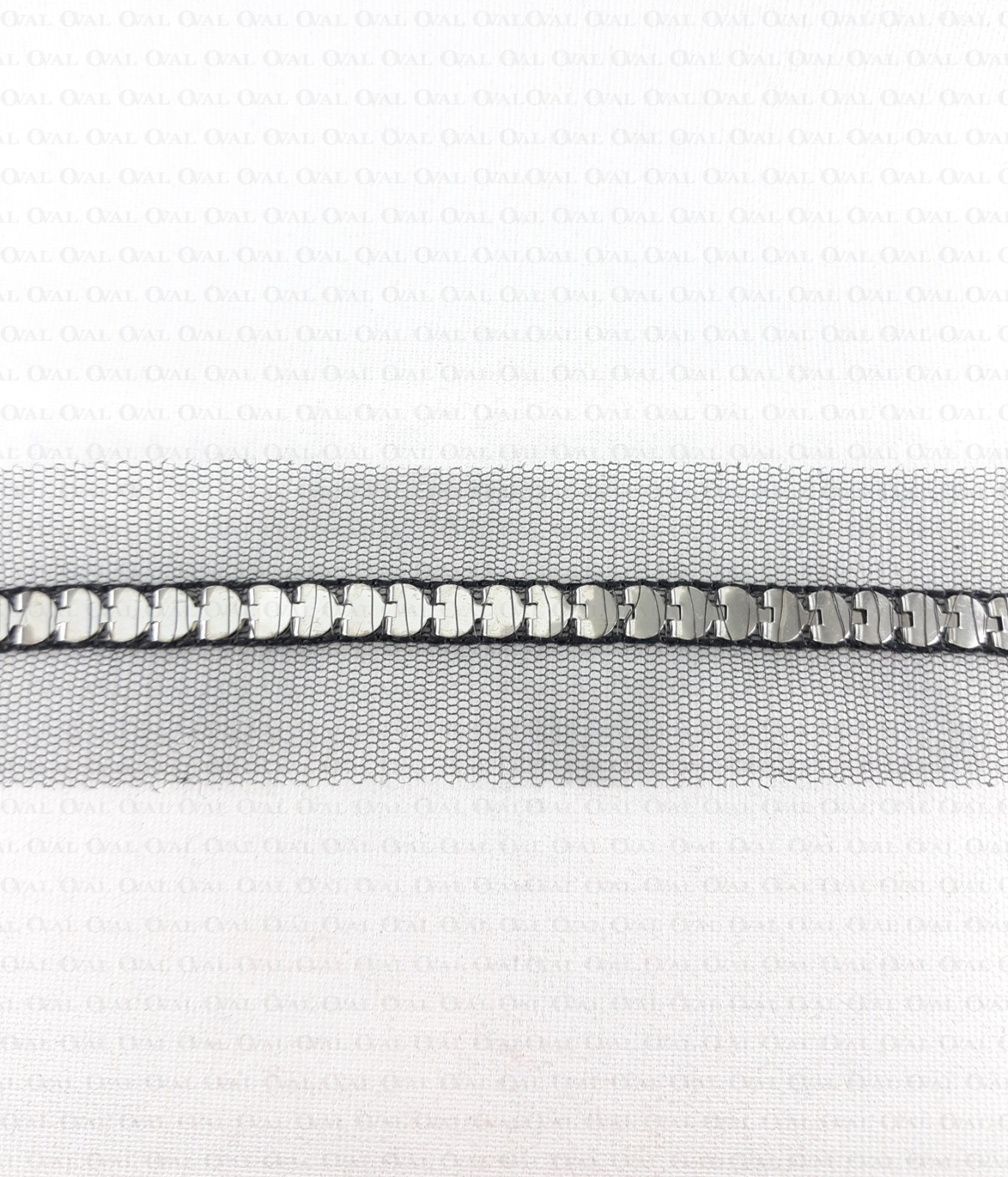 Taśma ozdobna z metalowym łańcuszkiem naszytym na szyfonie