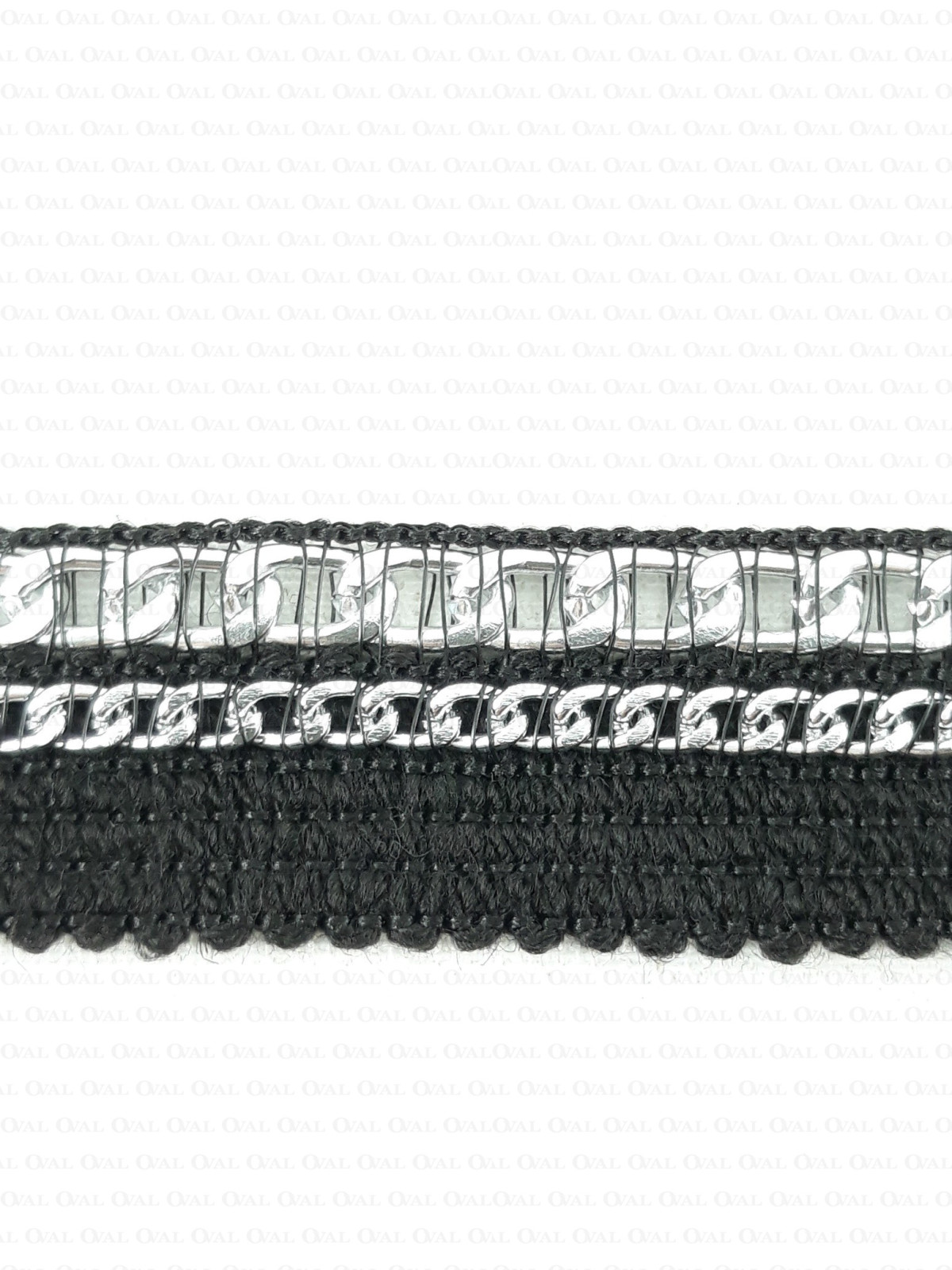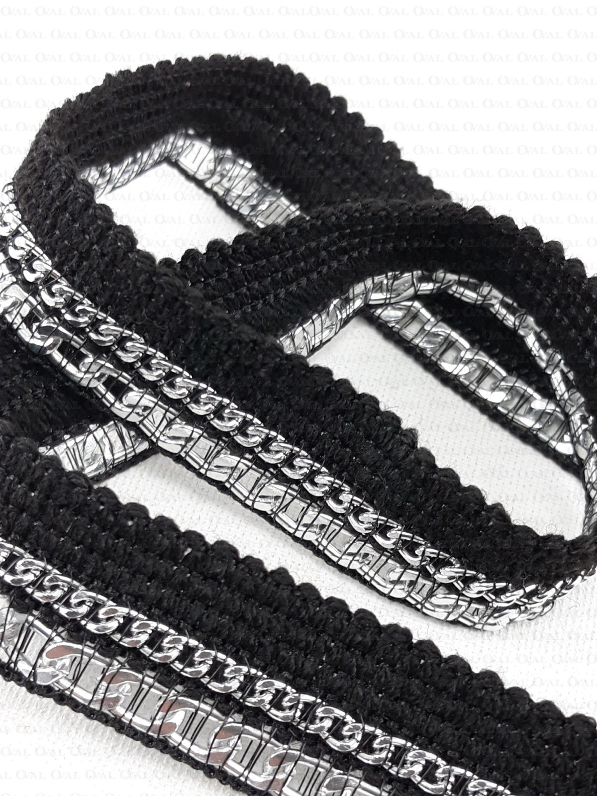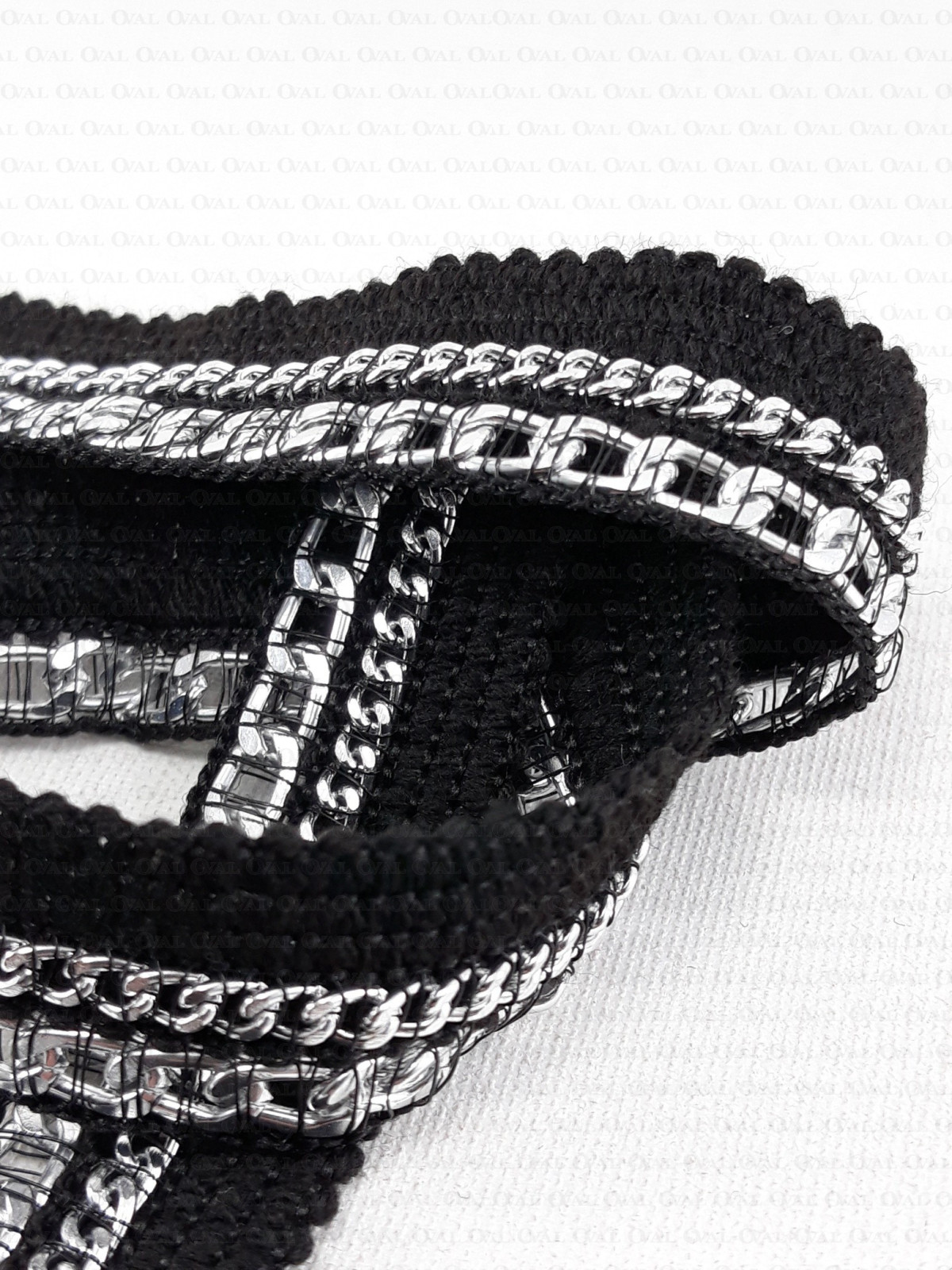 Kolor:czarna taśma ze srebrnym łańcuchem