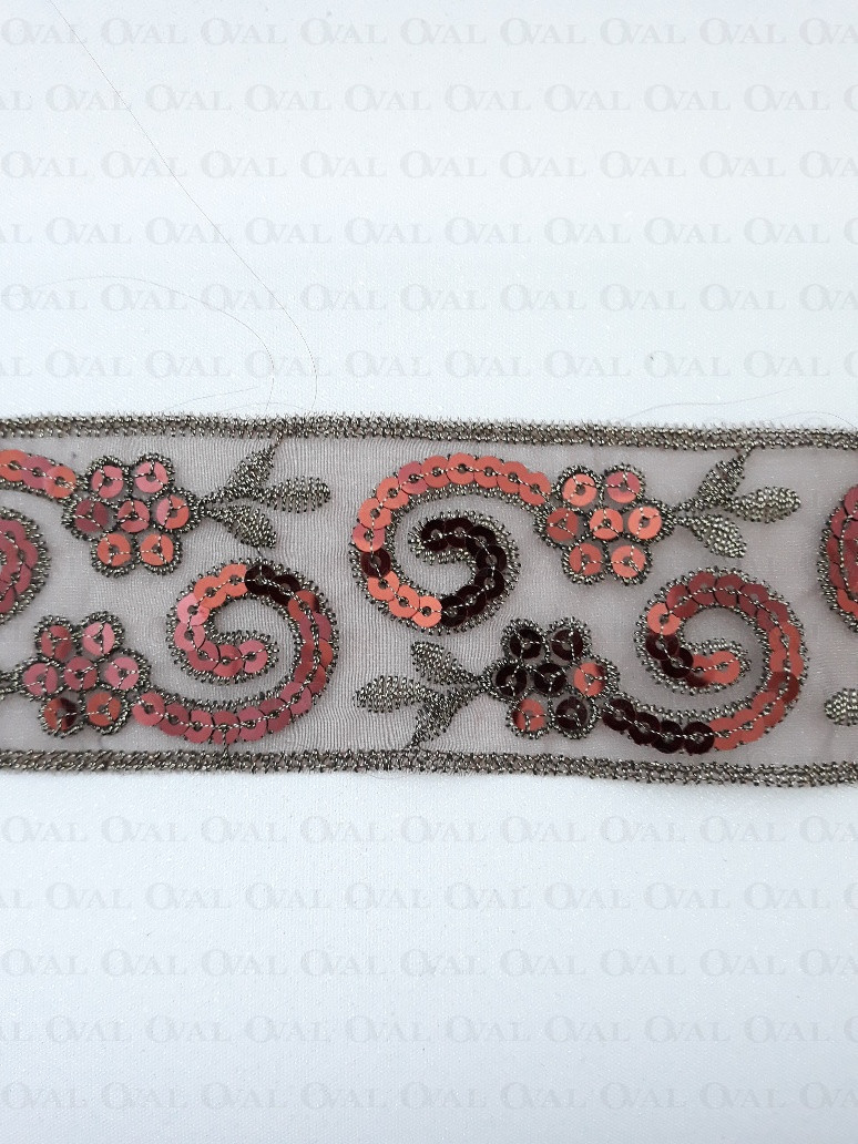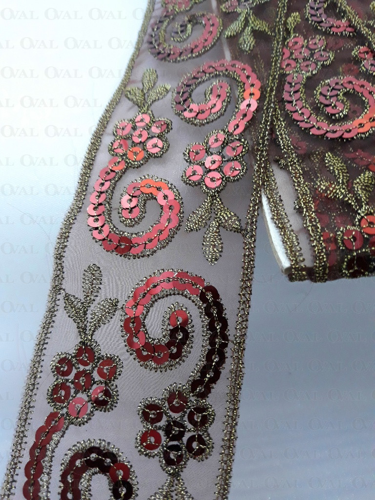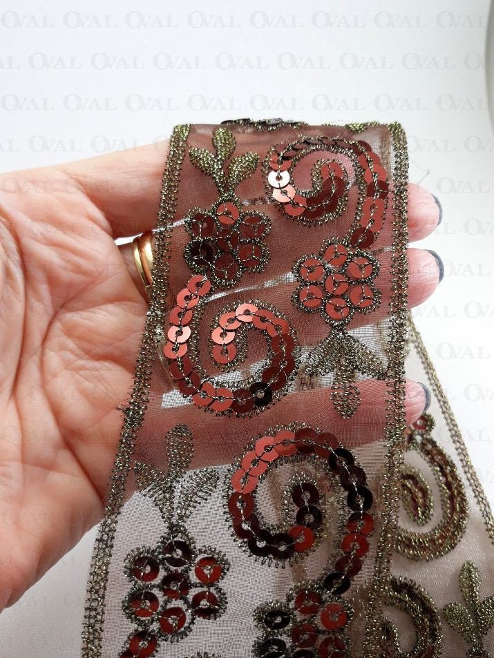 Ozdobna taśma szyfonowa z haftem i cekinami