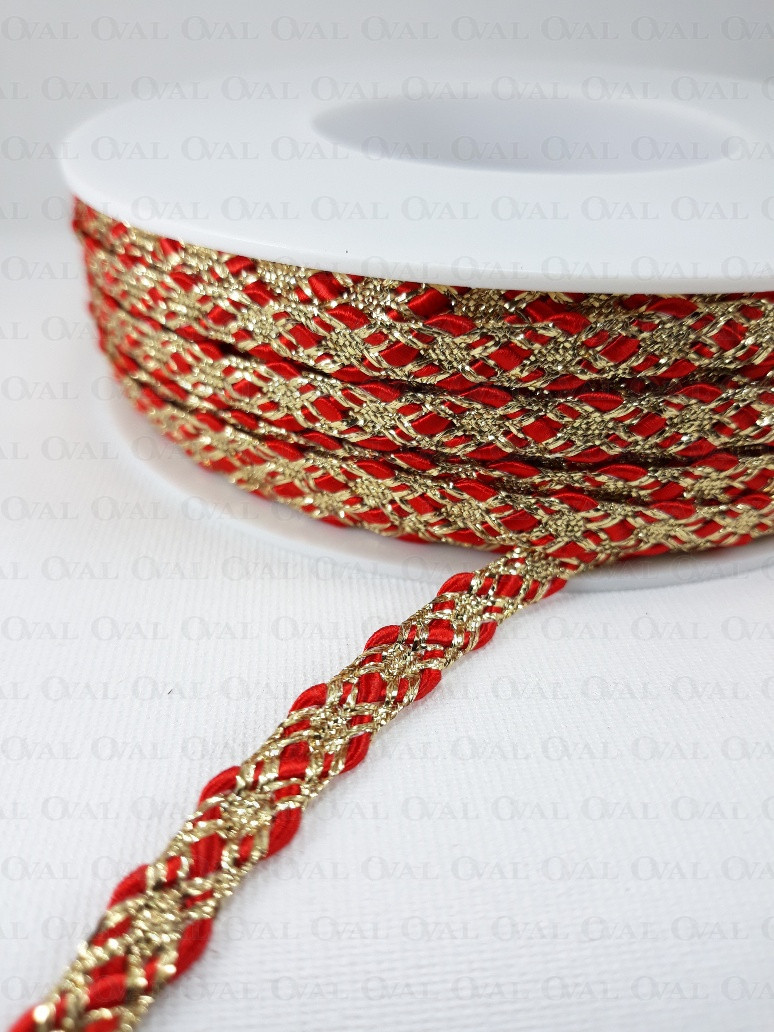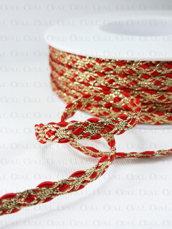 Ozdobna taśma ,złoty lureks z czerwonym atłasowym sznureczkiem.