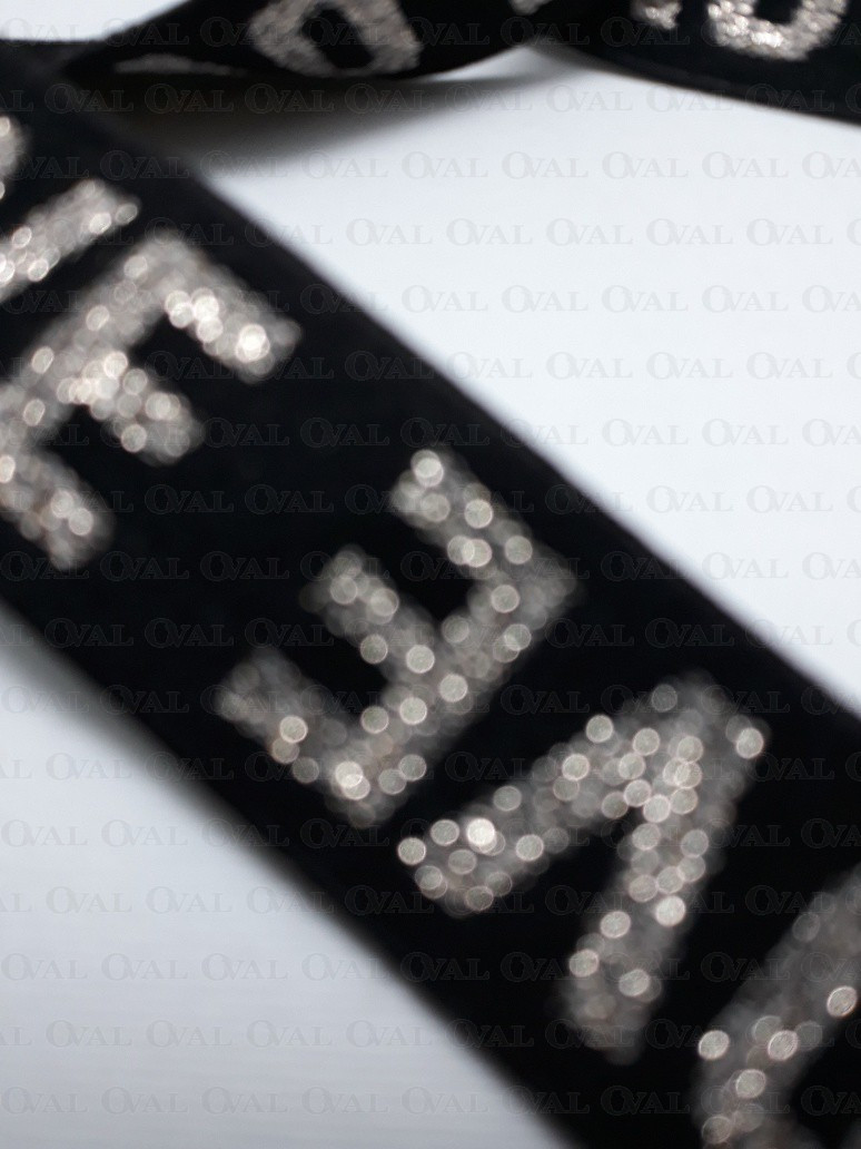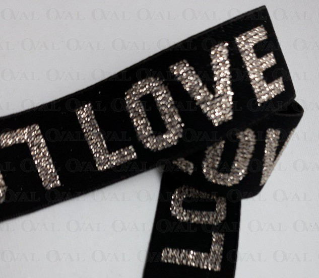 Ozdobna guma w kolorze czarnym z napisem w kolorze bladego złota