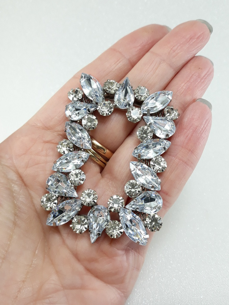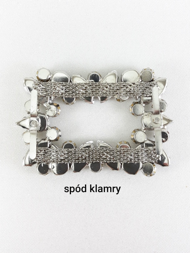 Bardzo ozdobny, metalowy element z dżetów i kamieni.