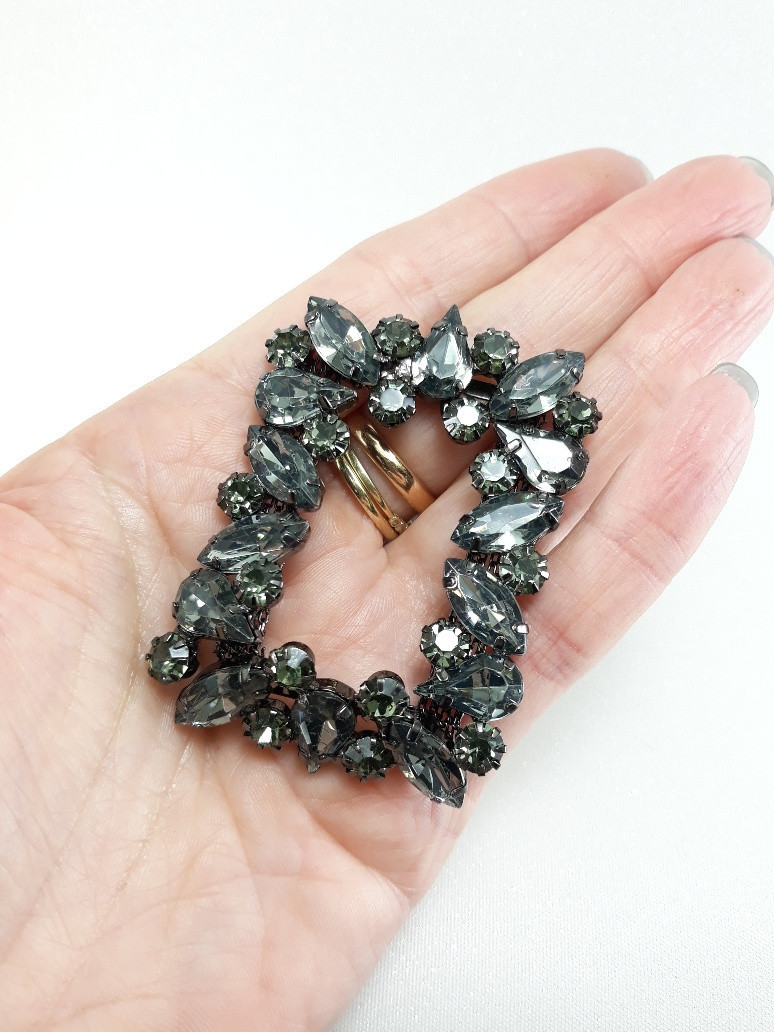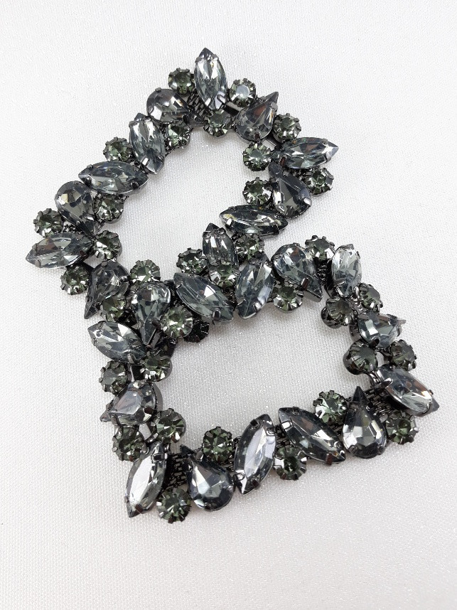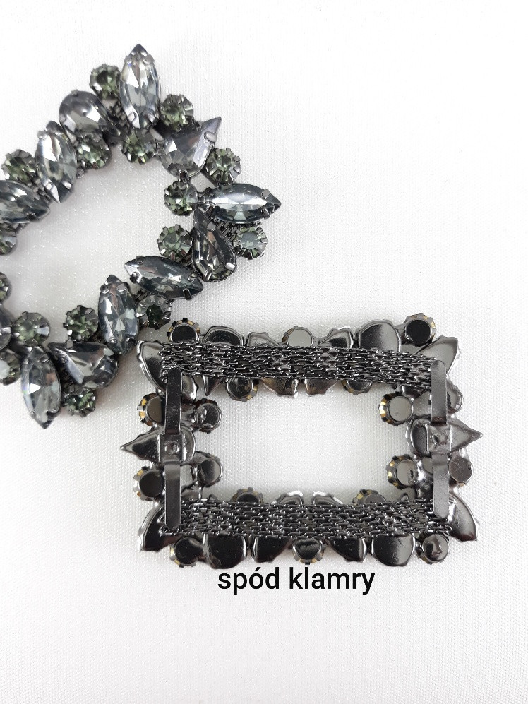 Bardzo ozdobny, metalowy element z dżetów i kamieni.