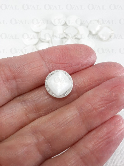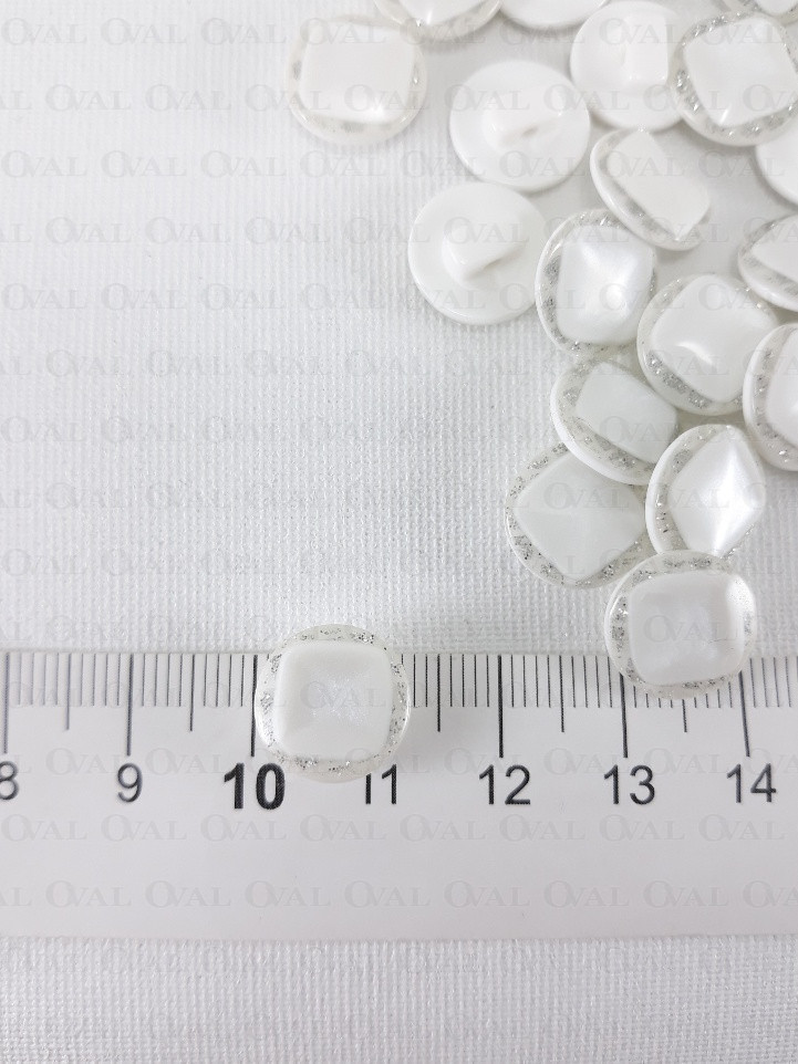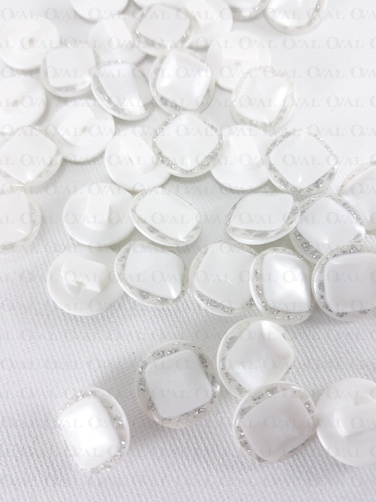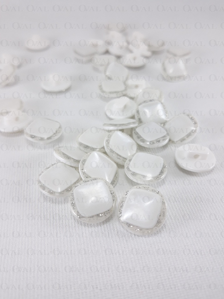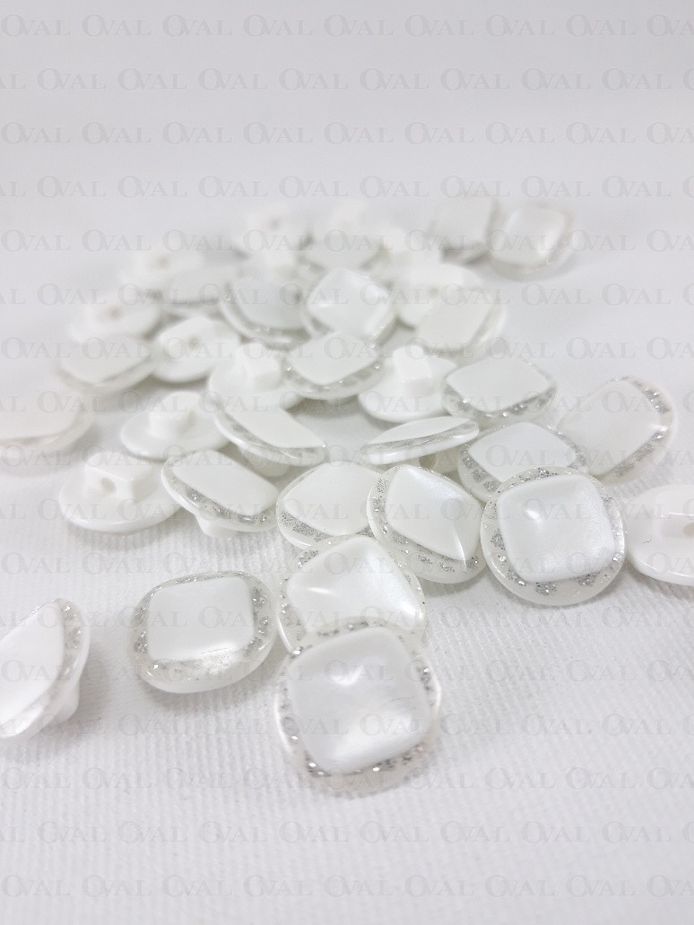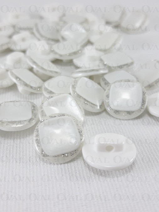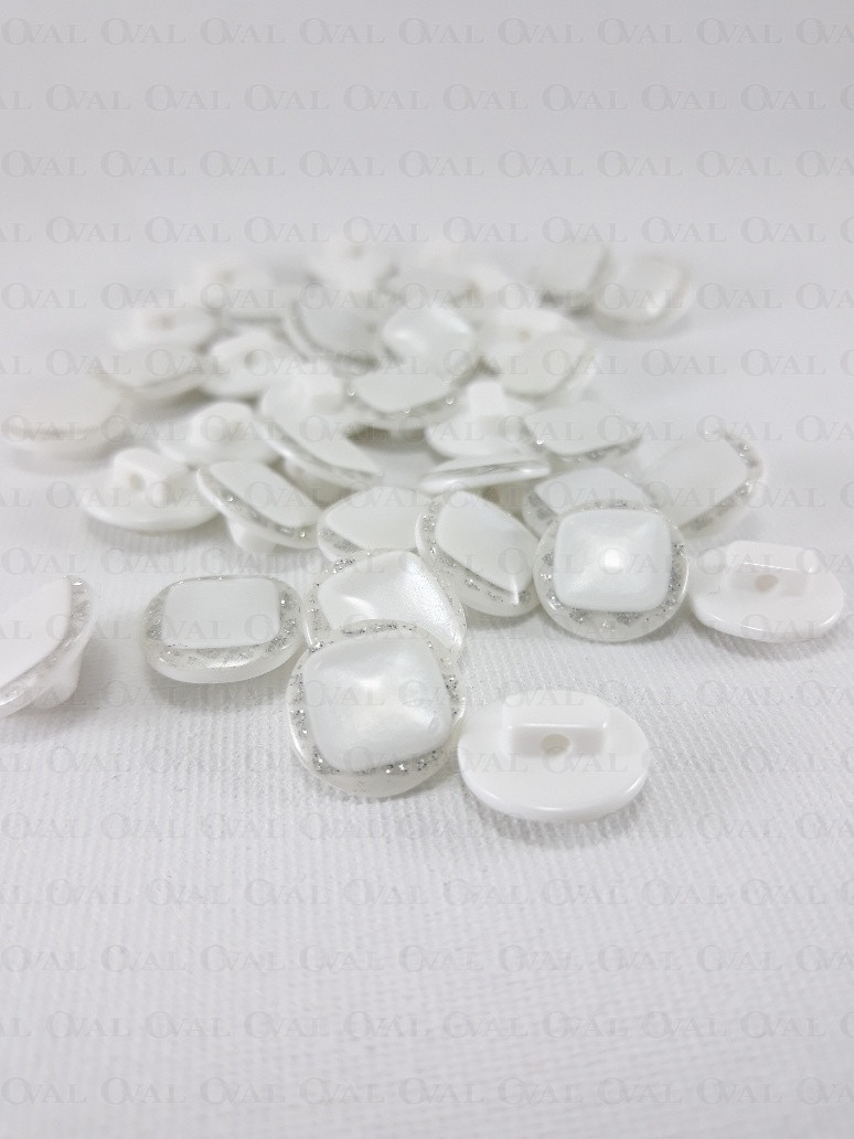 Guzik poliestrowy, perłowy ,płaski ze srebrnym akcentem
