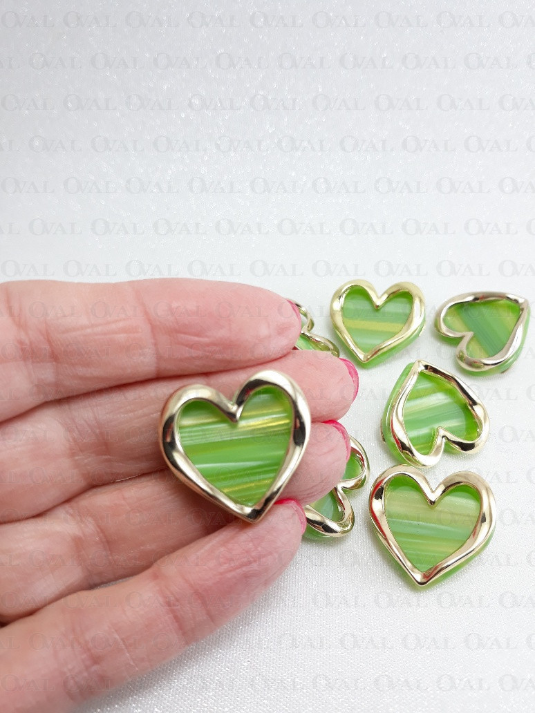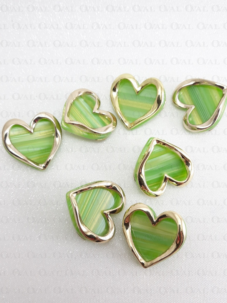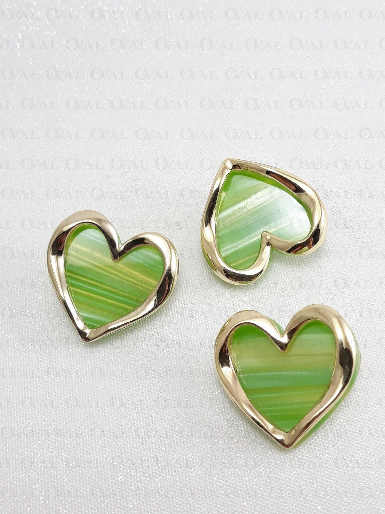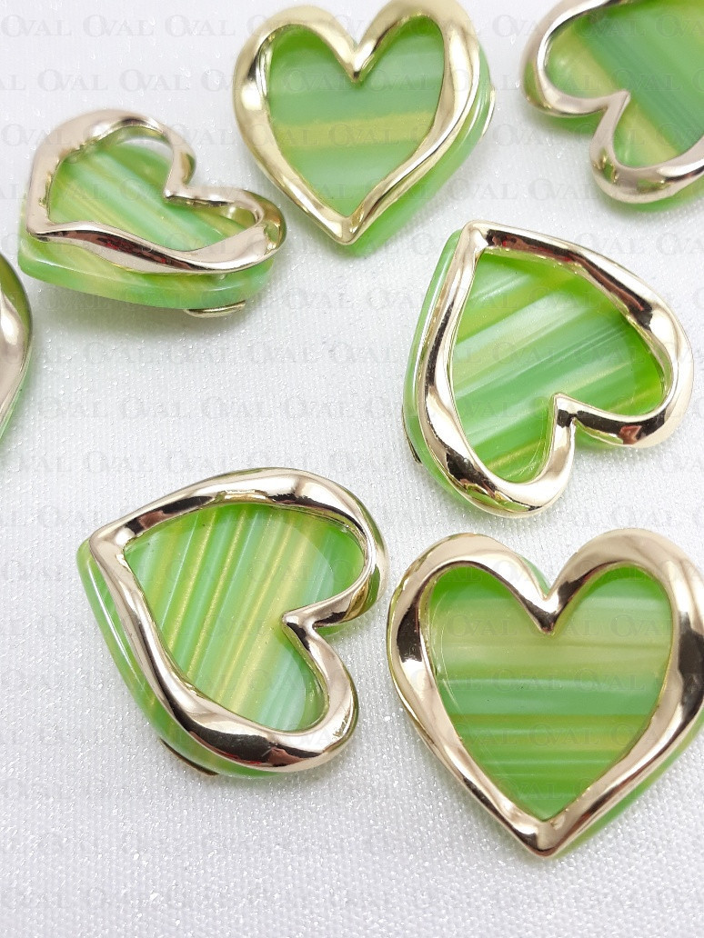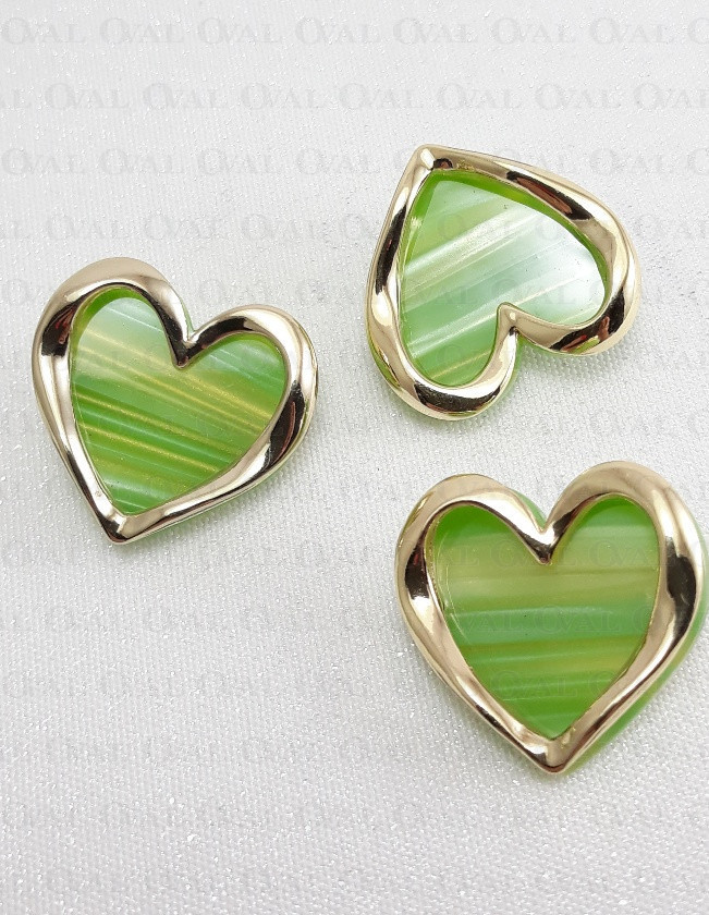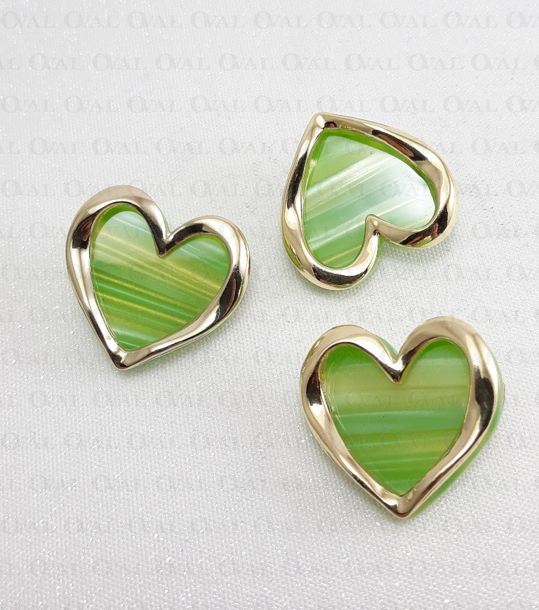 Guzik poliestrowy imitujący masę perłową z metalowym sercem na stopce.