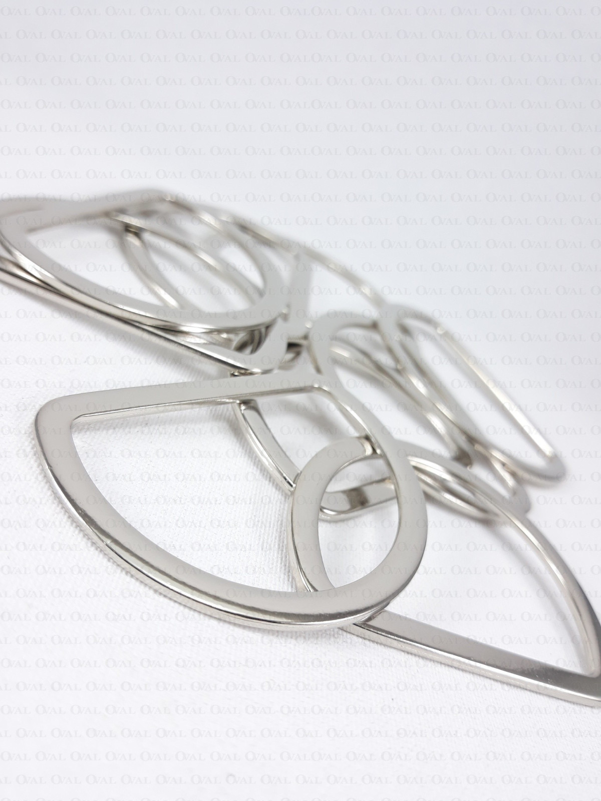 Metalowe półkółko w kolorze srebrnym z ładnym połyskiem.