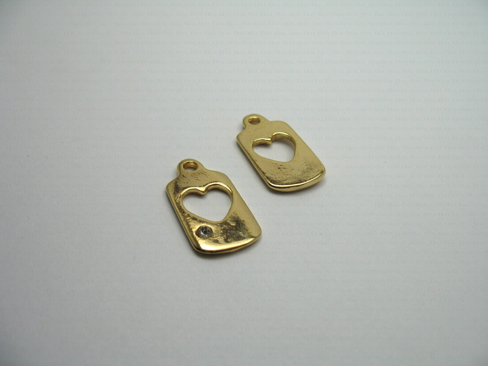 Metalowa przywieszka ozdobna - serca z dżetem.