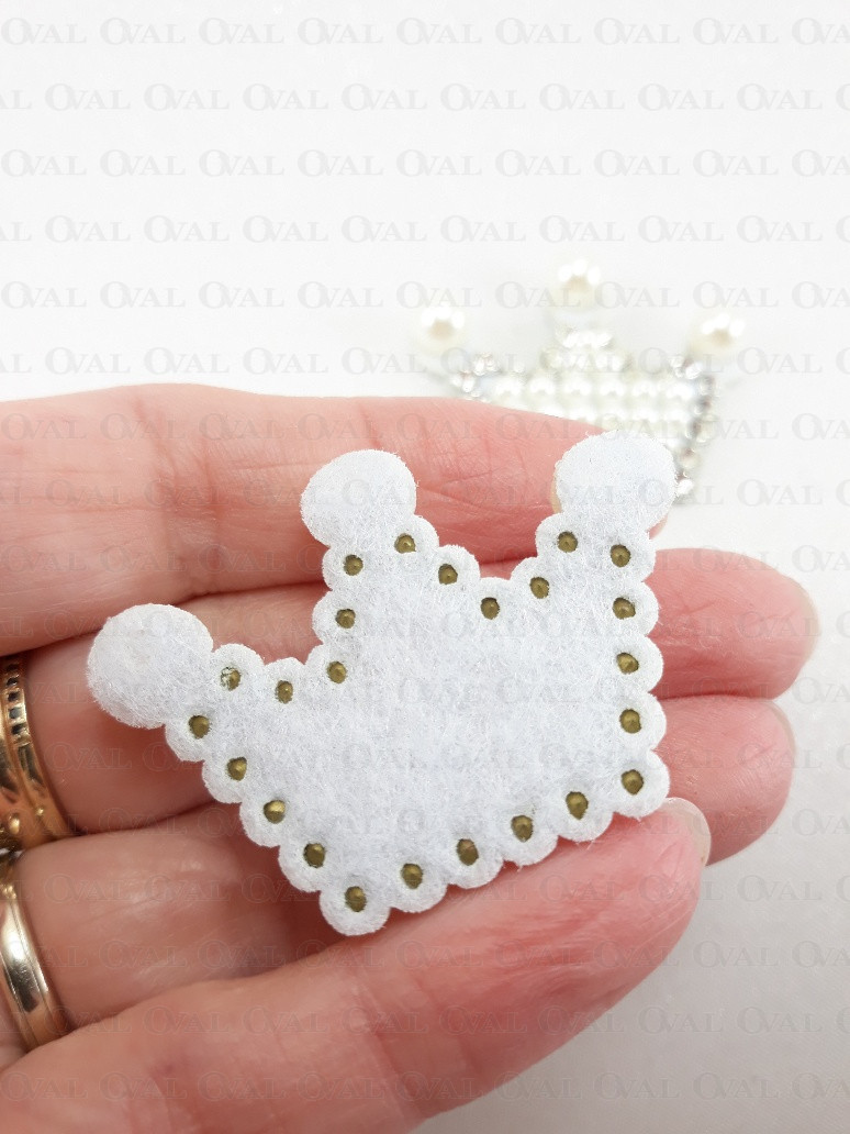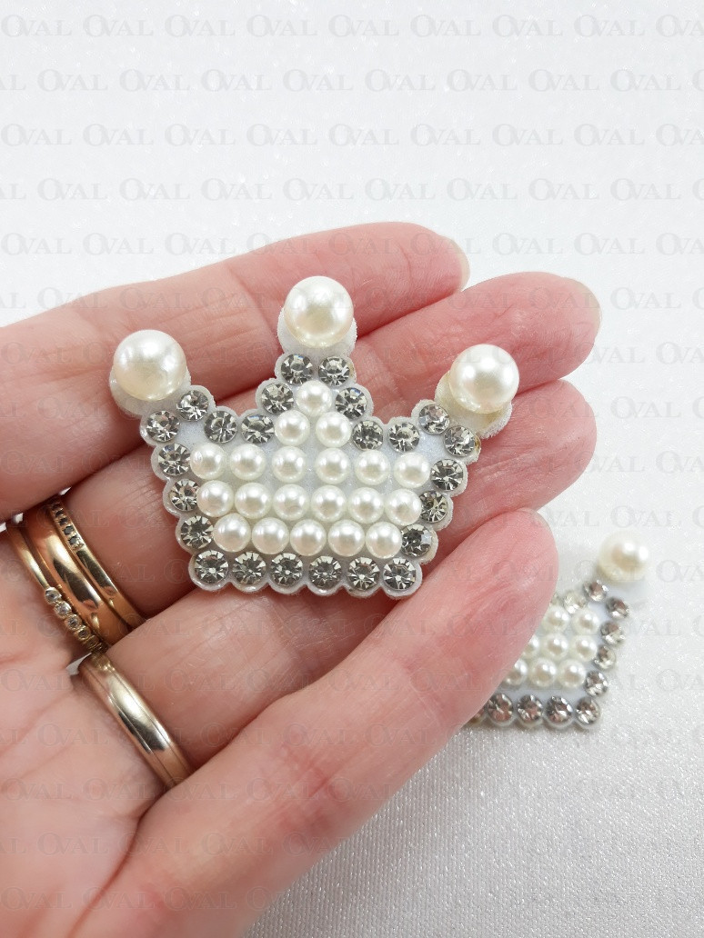Ozdobna aplikacja z perełek i dżetów w kształcie korony.