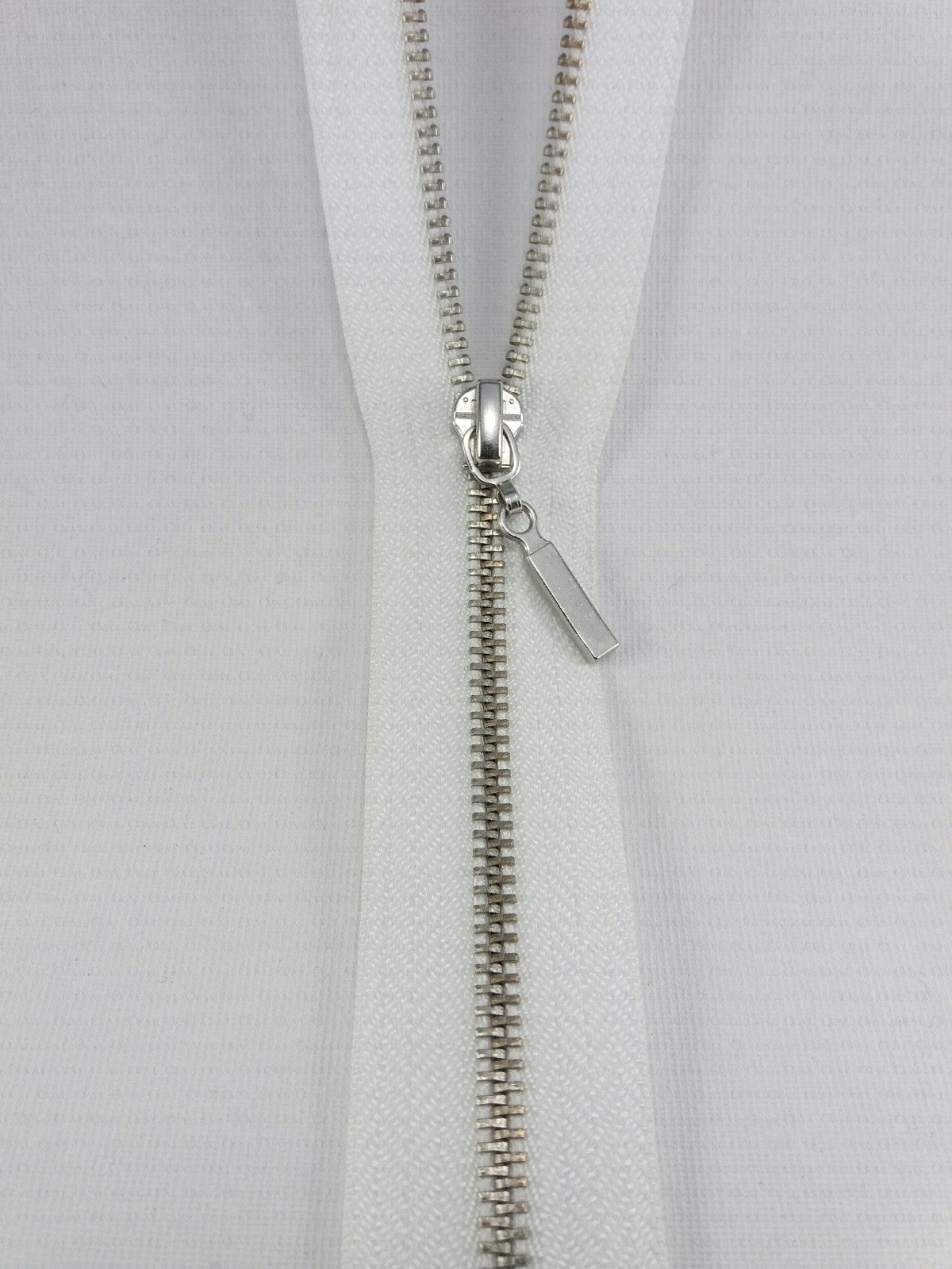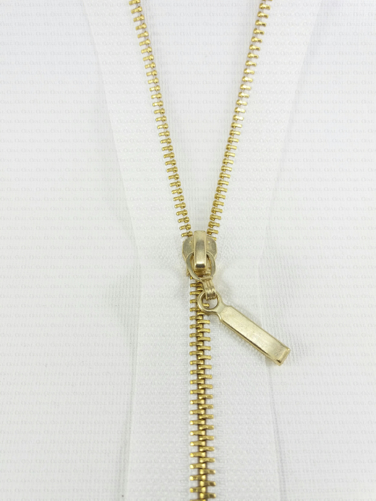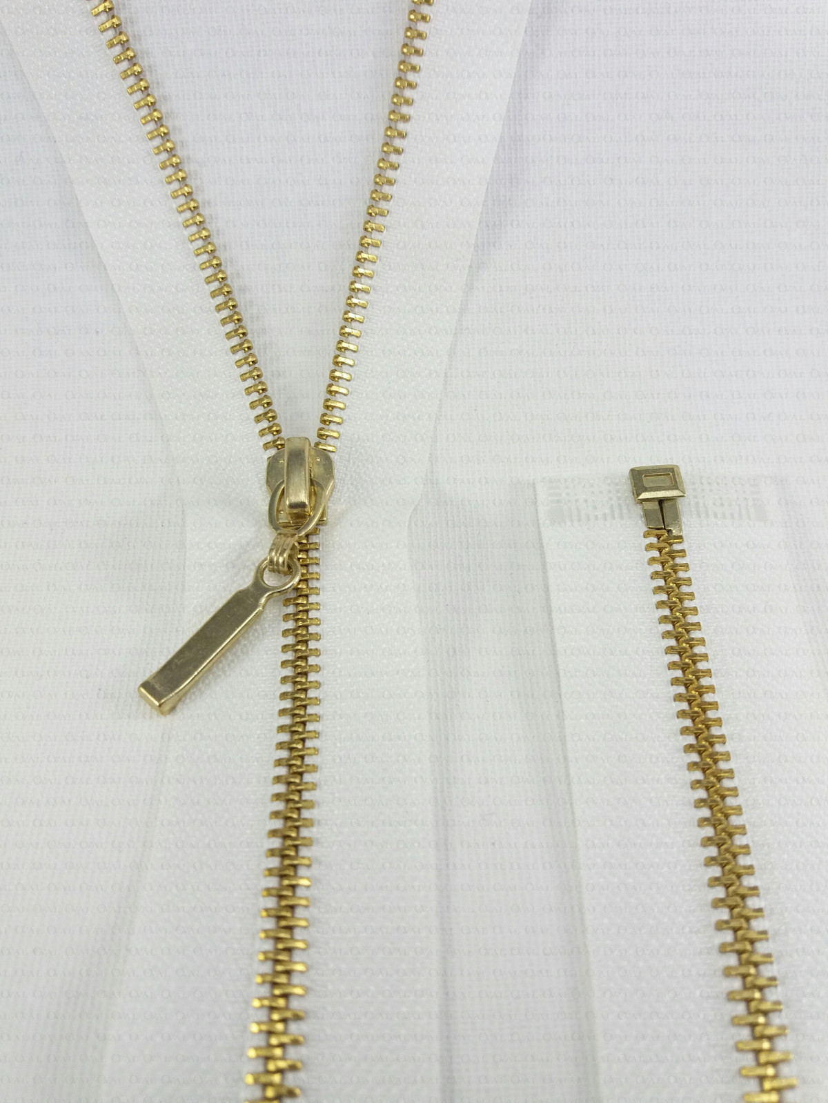 W długości 50cm zamki posiadają dwa wykończeni kolorystyczne :biała taśma srebrne ząbki oraz biała taśma złote ząbki.