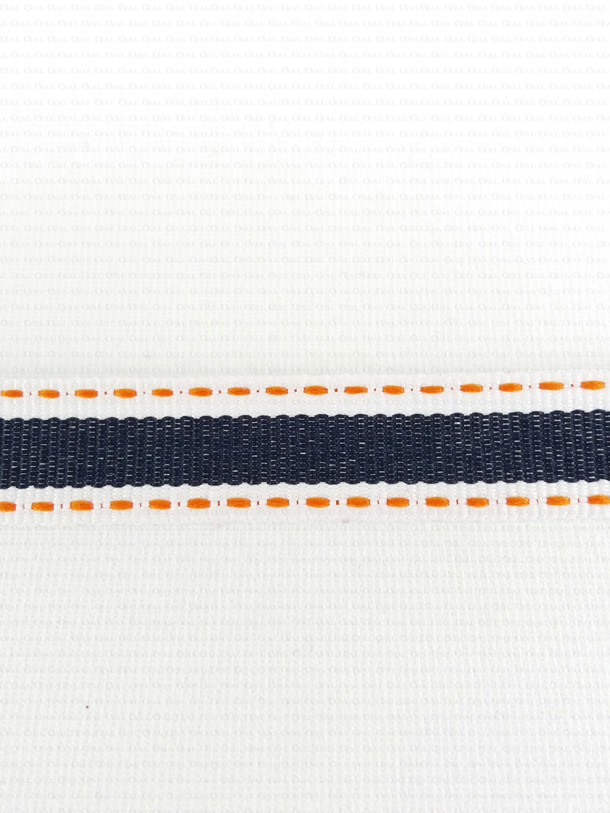 Taśma rypsowa z granatowym paskiem i pomarańczową stębnówka na brzegach