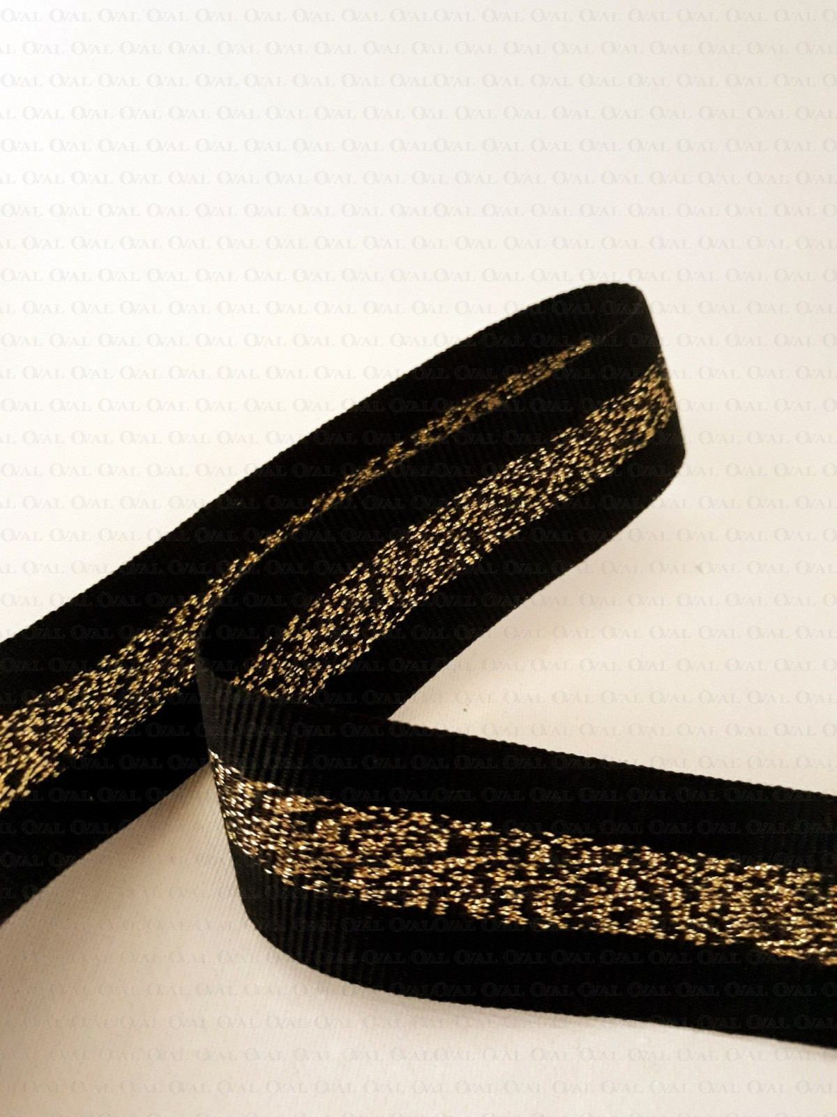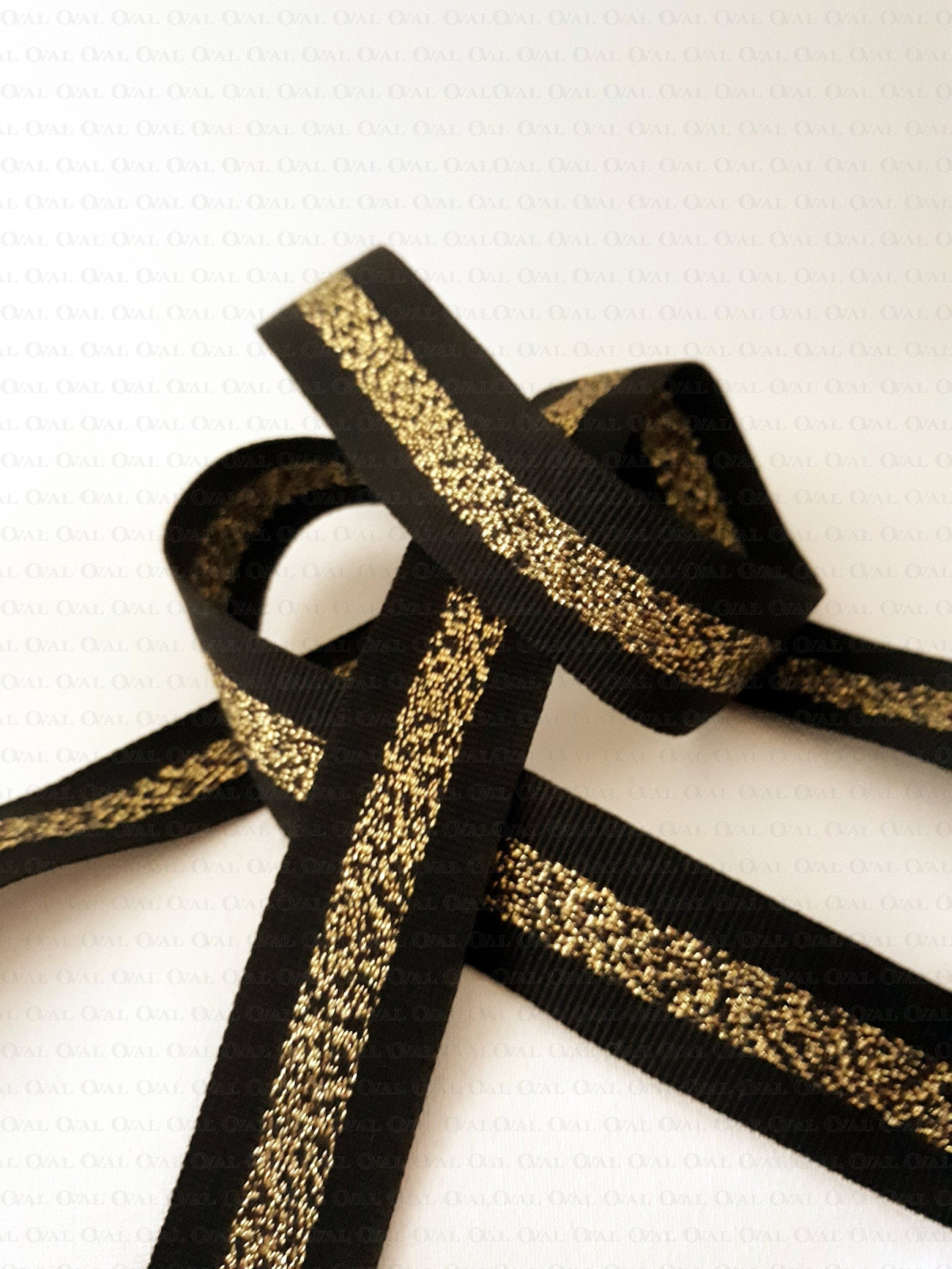 Taśma rypsowa w kolorze czarnym ze złotym paskiem po środku
