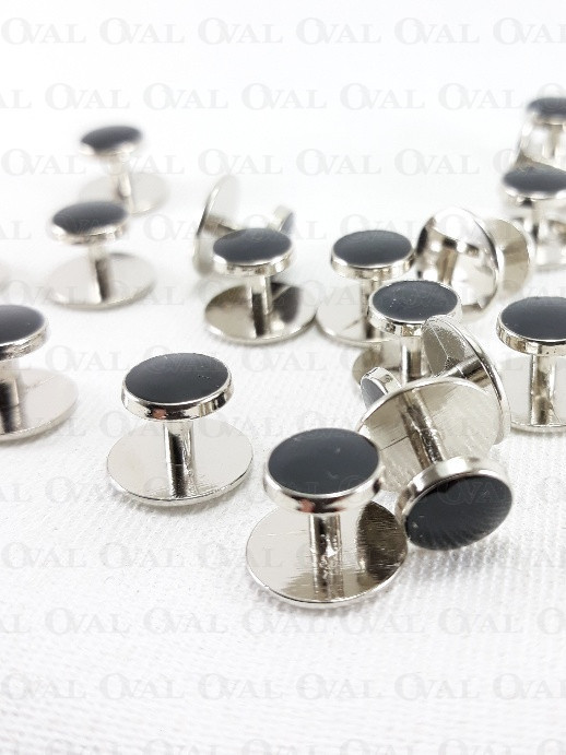 Metalowe guziki smokingowe, czarne ze srebrem.