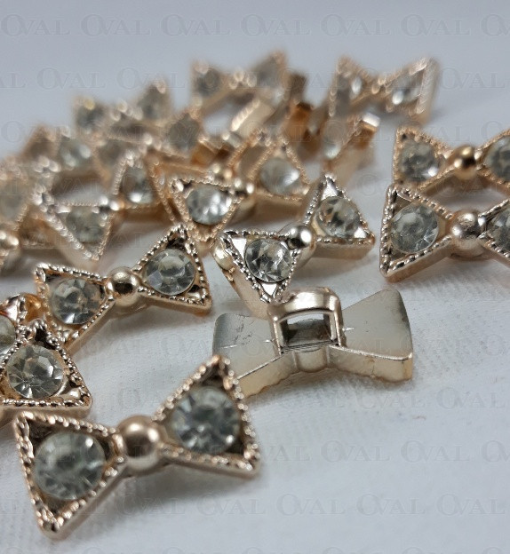 Ozdobny guzik metalizowany w kształcie kokardki z dżetami.