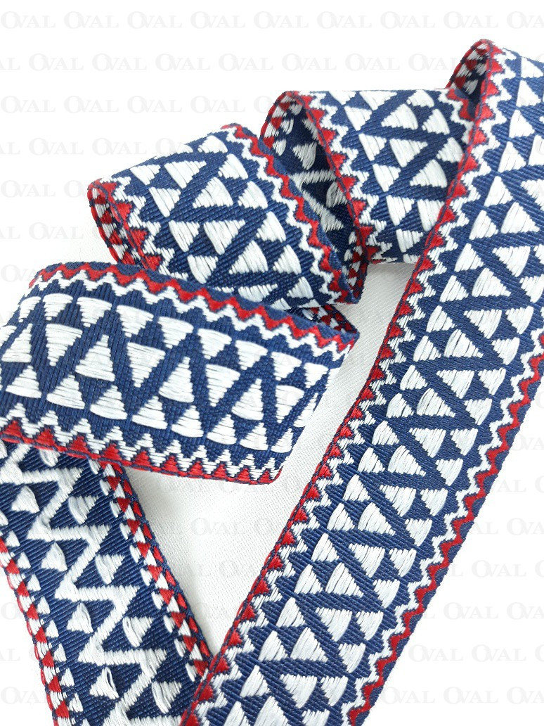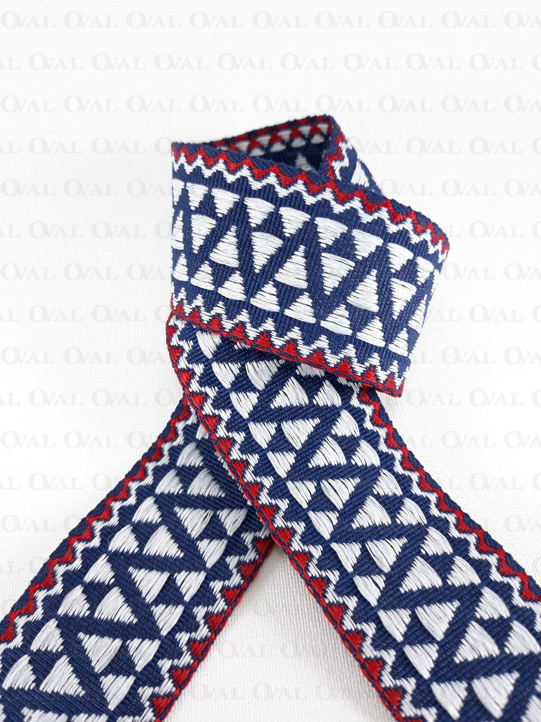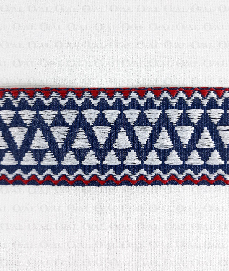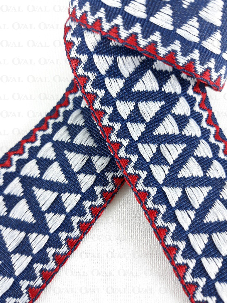 Kolor:granatowa taśma z białym i czerwonym haftem