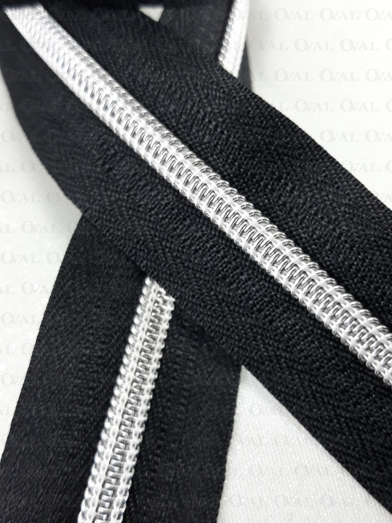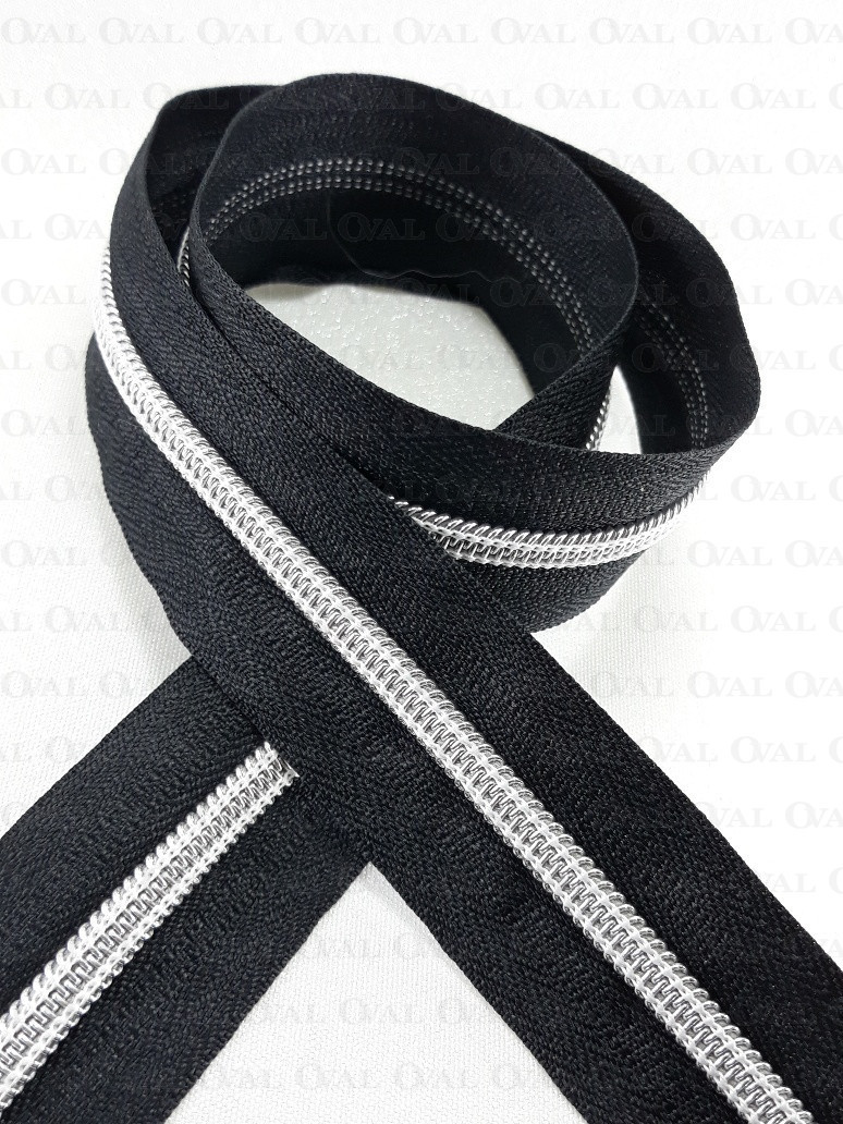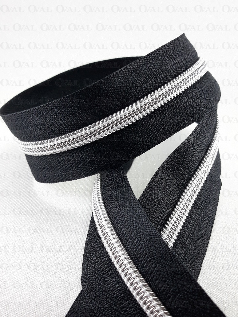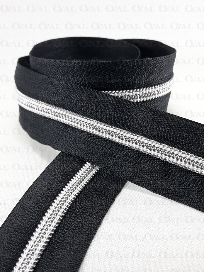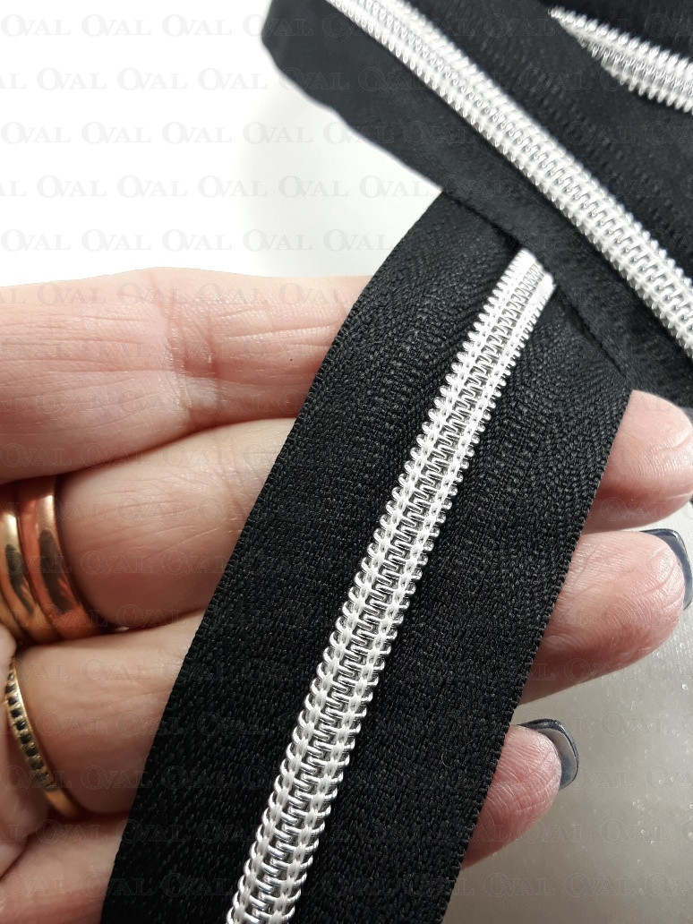 Taśma suwakowa w kolorze czarnym ze srebrnymi ząbkami