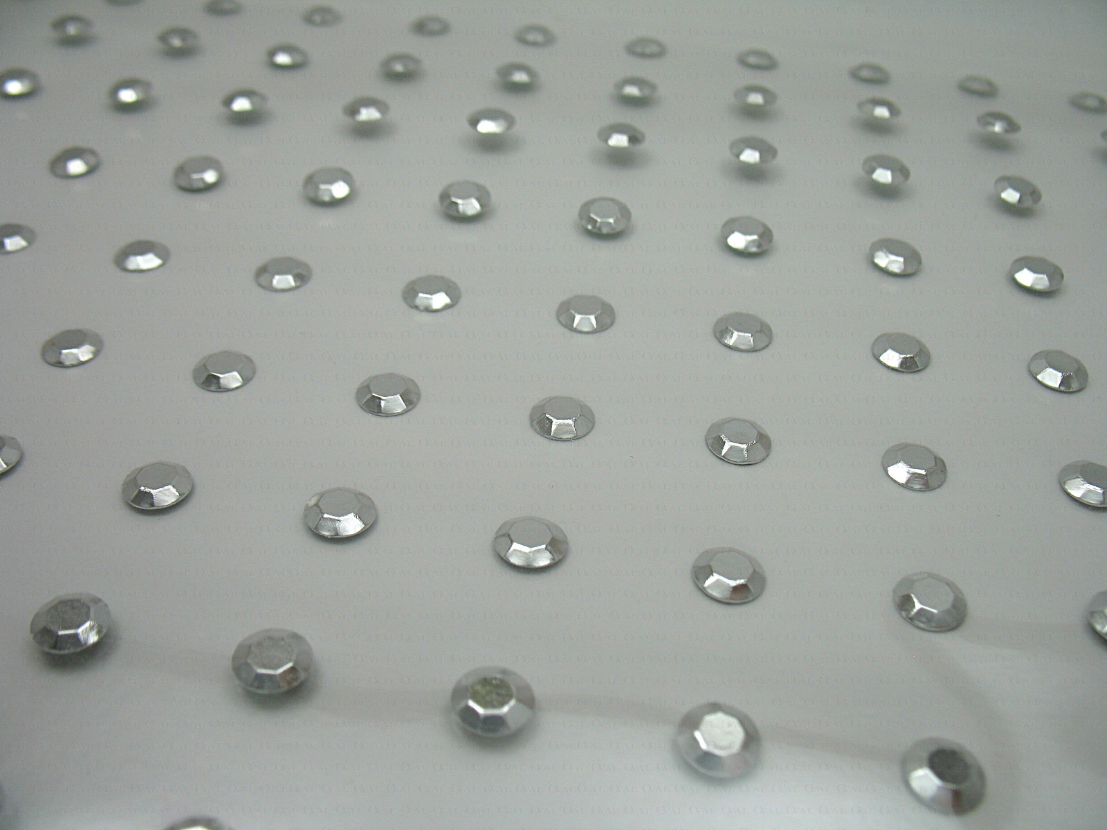 Termo dżety - blaszki na arkuszu A4 znajduje się 187 dżetów w kolorze srebrnym o średnicy 6 mm.