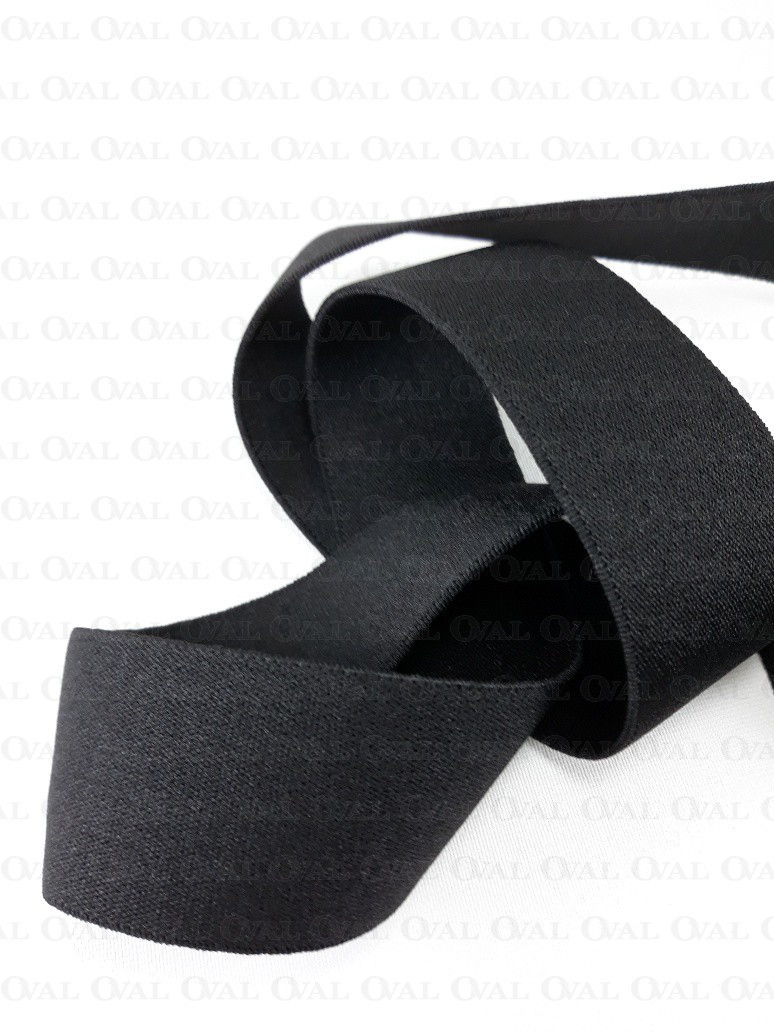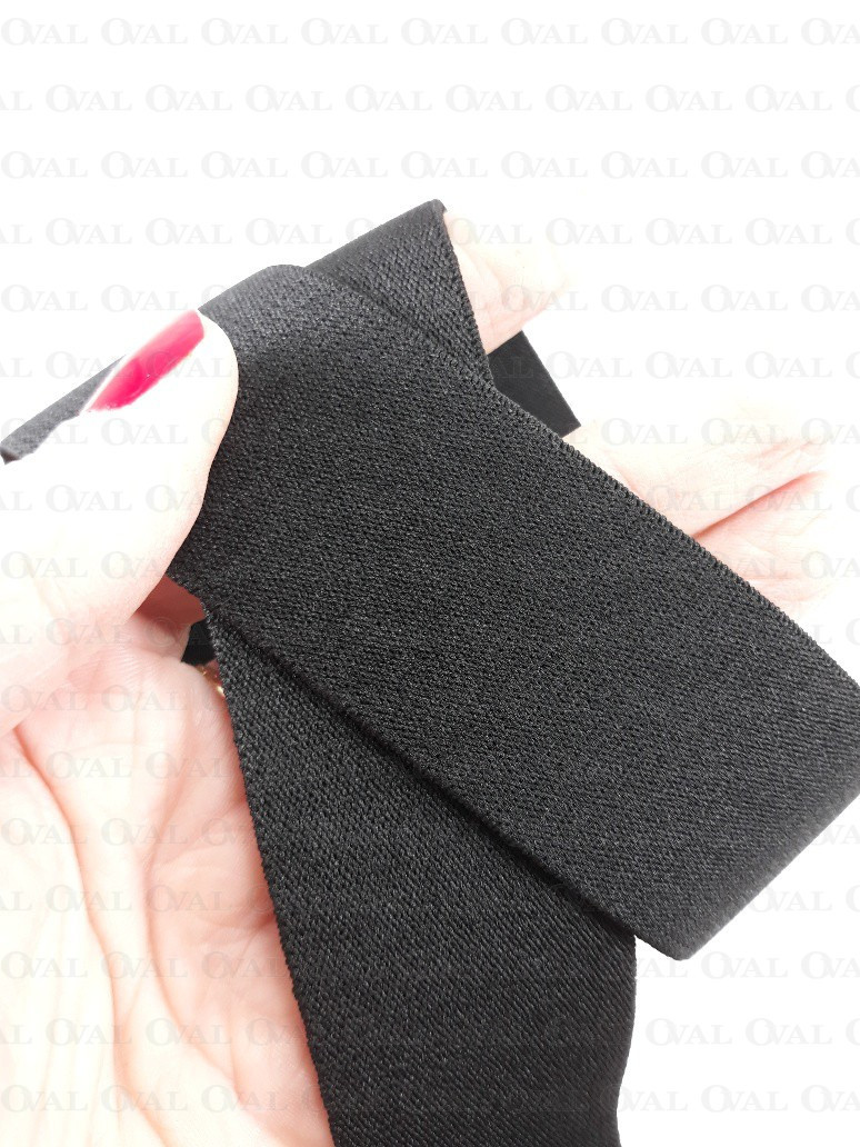 Guma czarna tkana, miękka i delikatna z lekkim poślizgiem w dotyku.