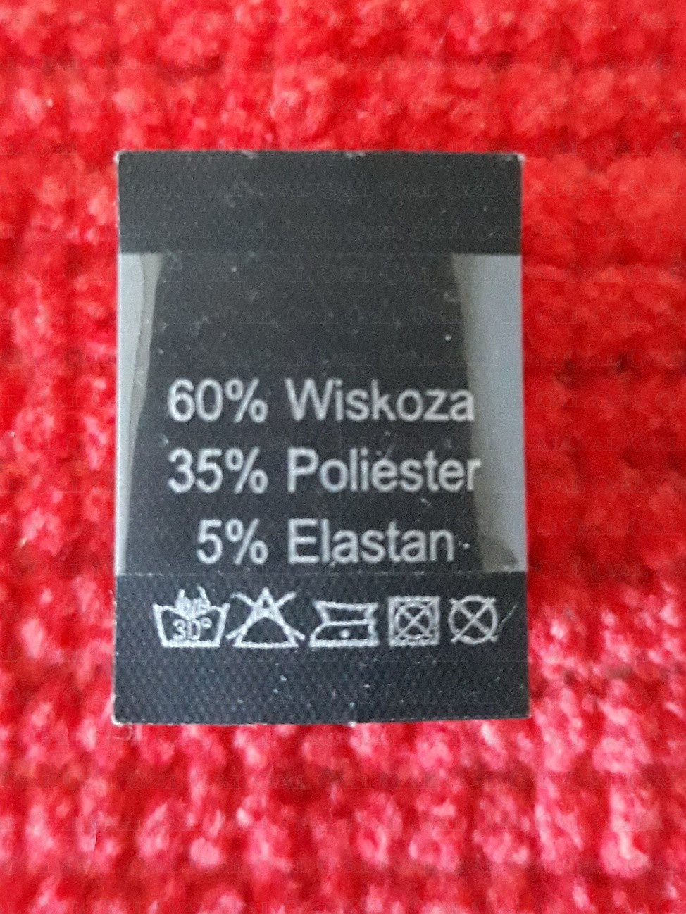 Wszywka odzieżowa zawierająca skład surowco wy oraz przepis prania uszytego produktu.