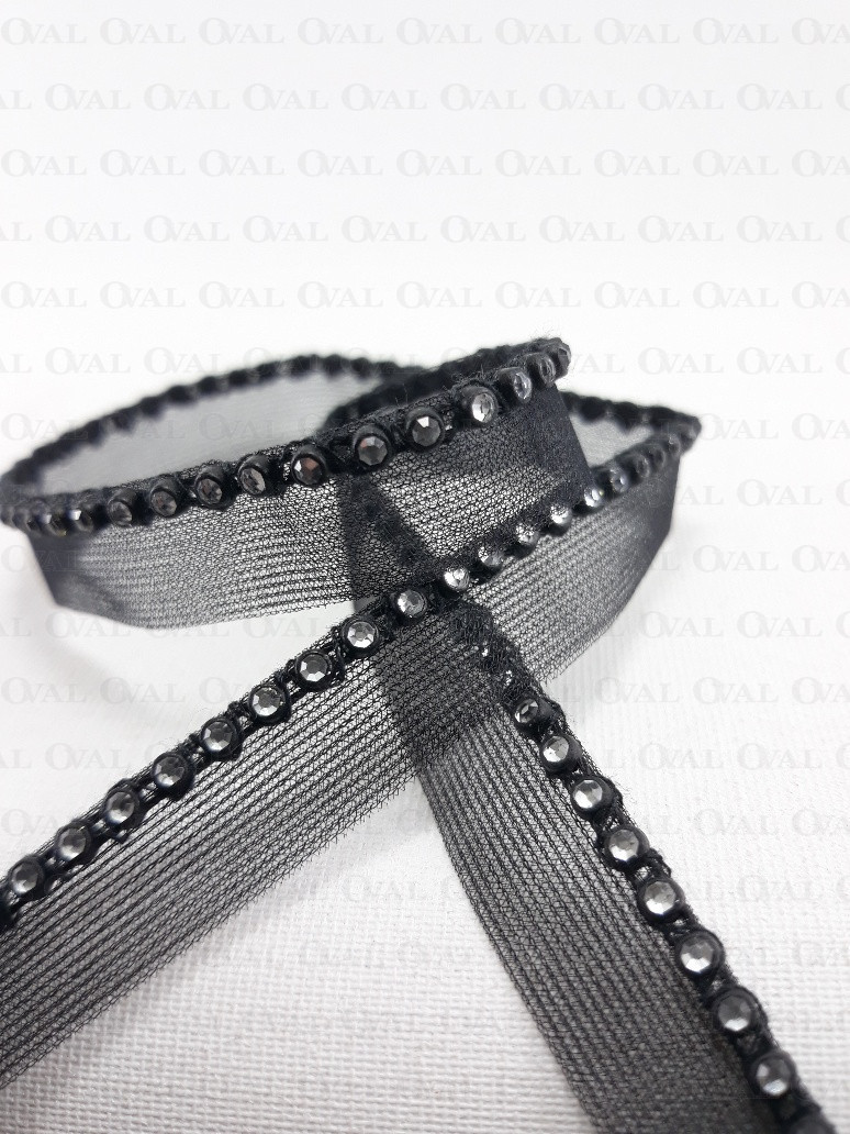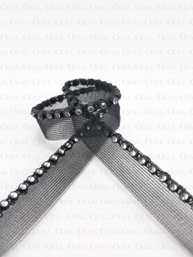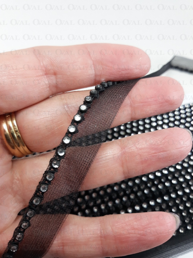 Ozdobna wypustka w kolorze czarnym z kamieniami akrylowymi imitującymi cyrkonie.