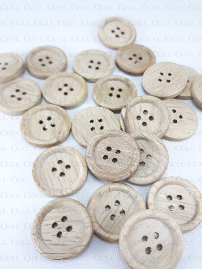 Drewniane guziki na cztery dziurki.