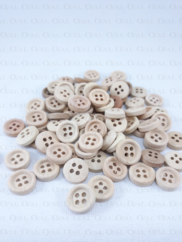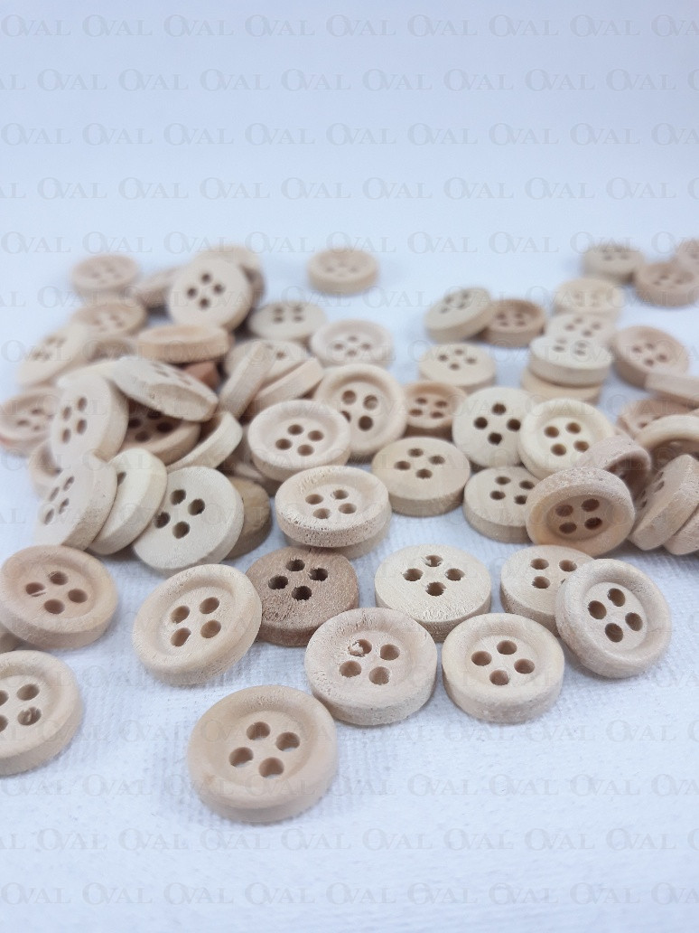 Drewniane guziki na cztery dziurki.