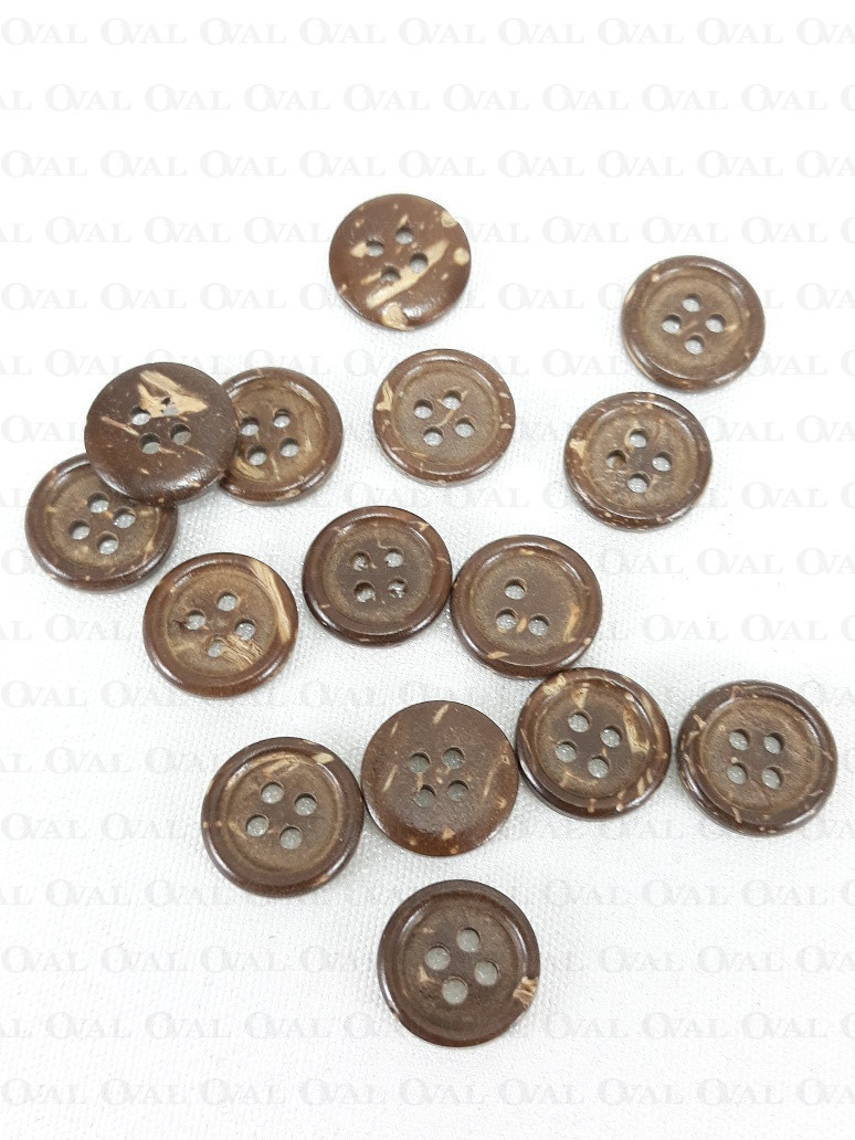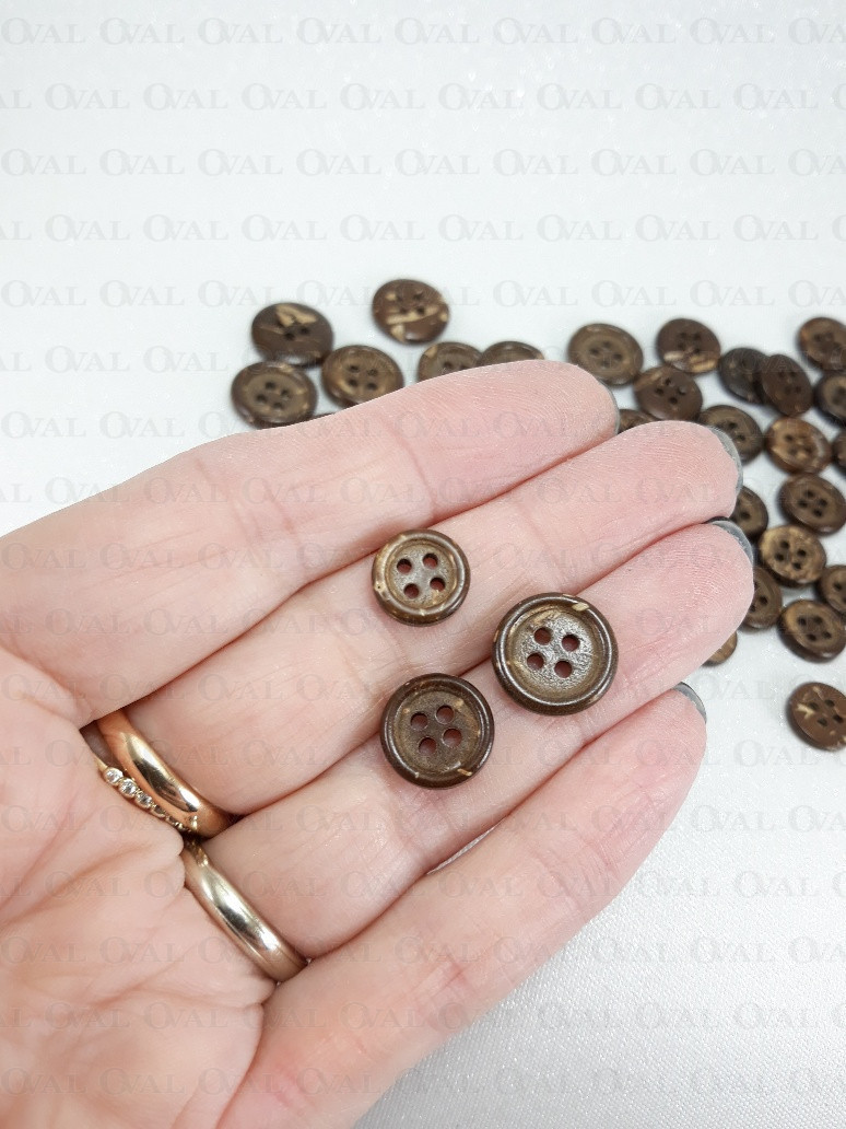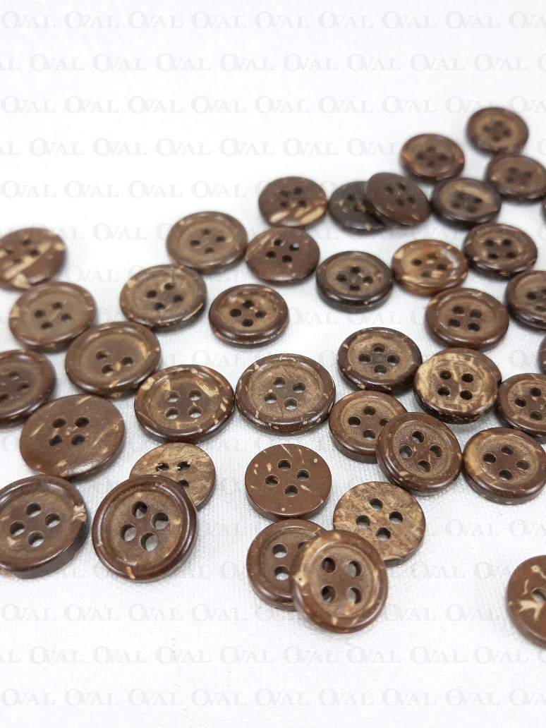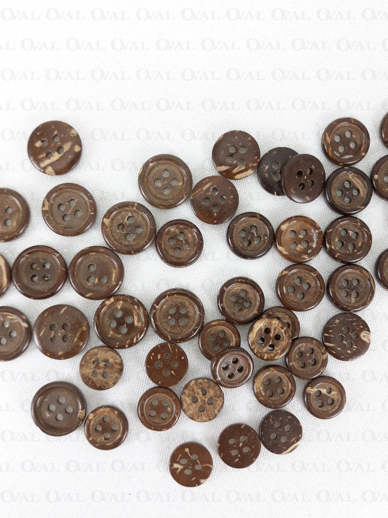 Guziki wykonane z łupiny kokosa, polerowane , przeszywane na cztery dziurki.