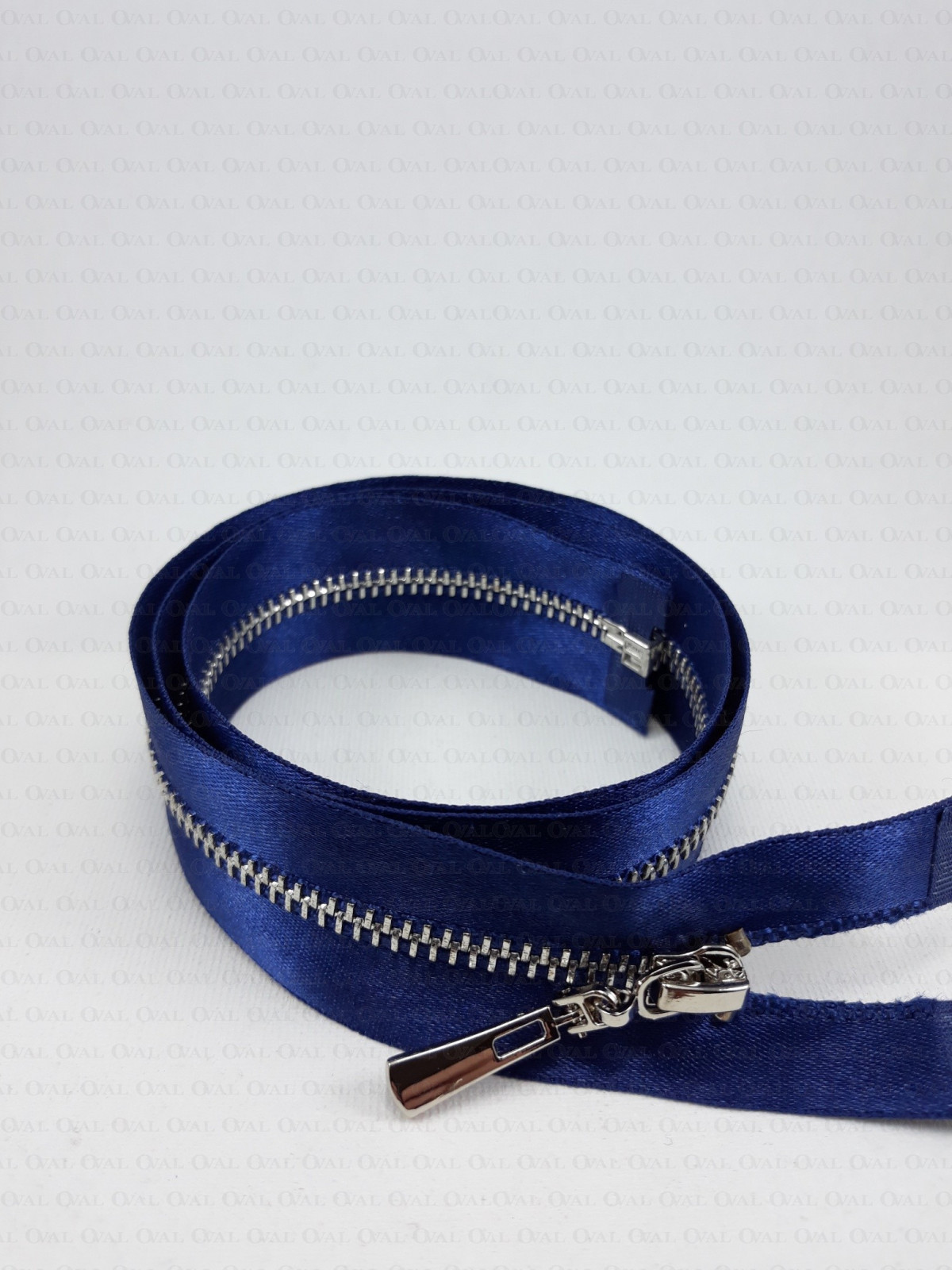 Zamki metalowe 60cm na atłasowej taśmie/srebrne ząbki 2246