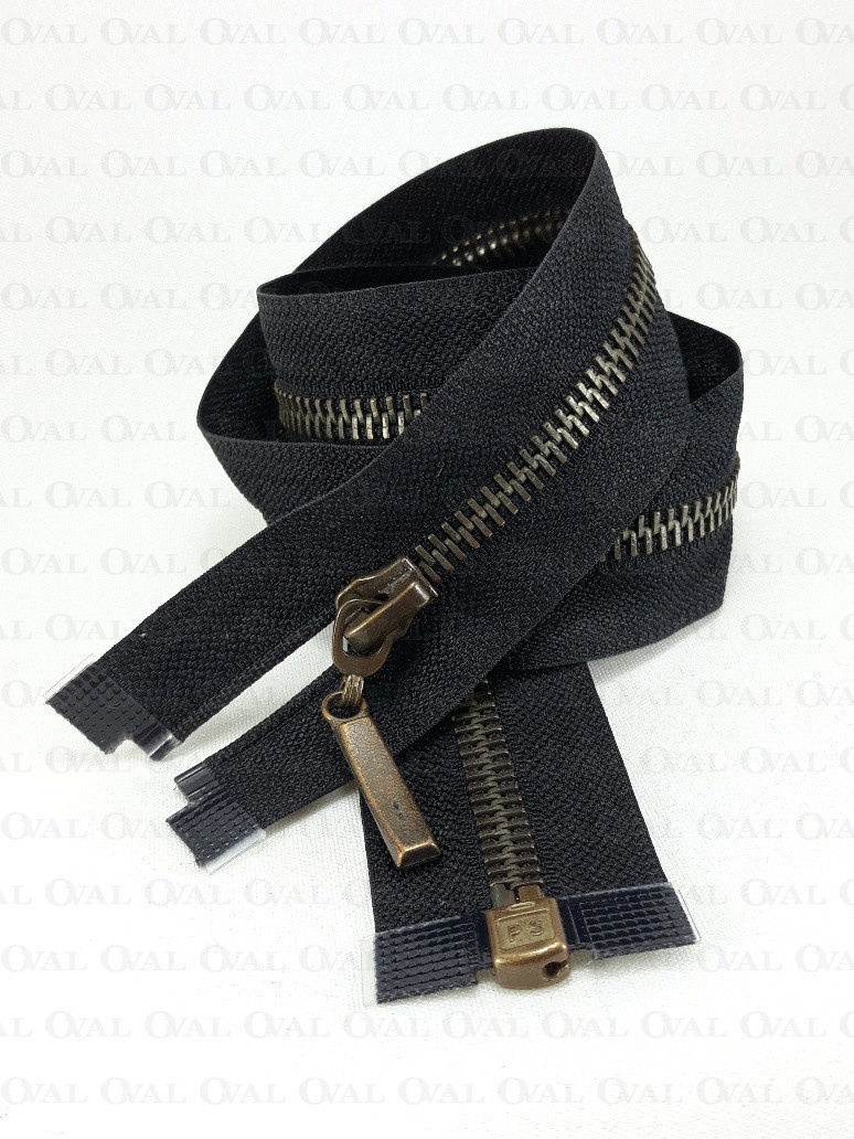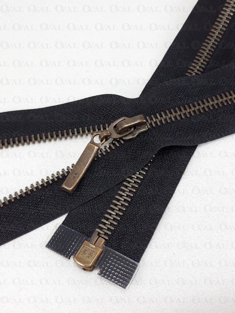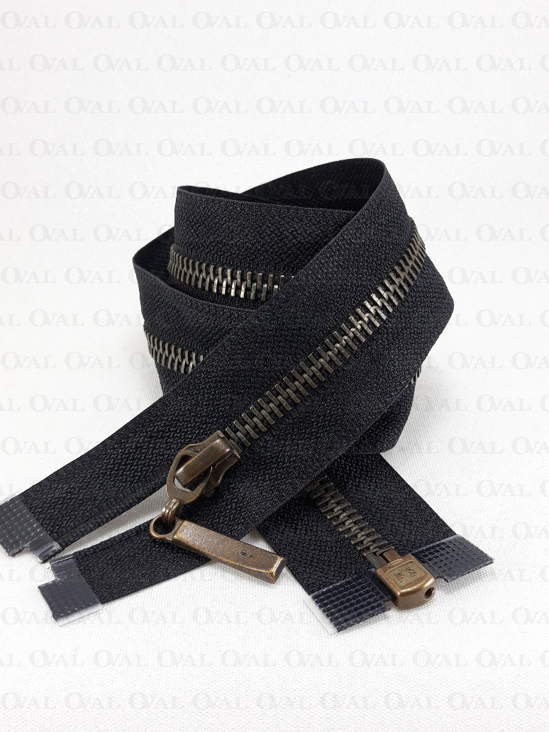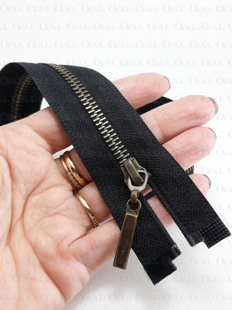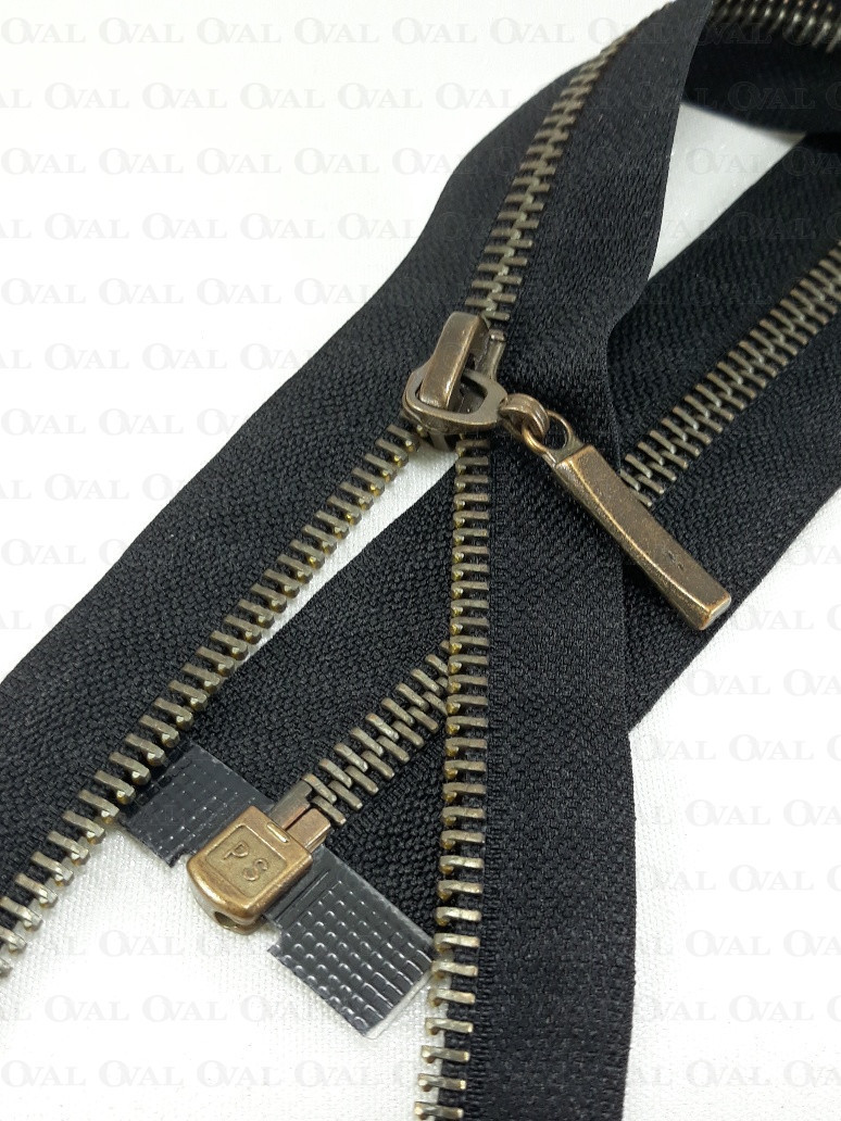Rozdzielczy zamek z matowymi, metalowymi ząbkami w kolorze starego złota