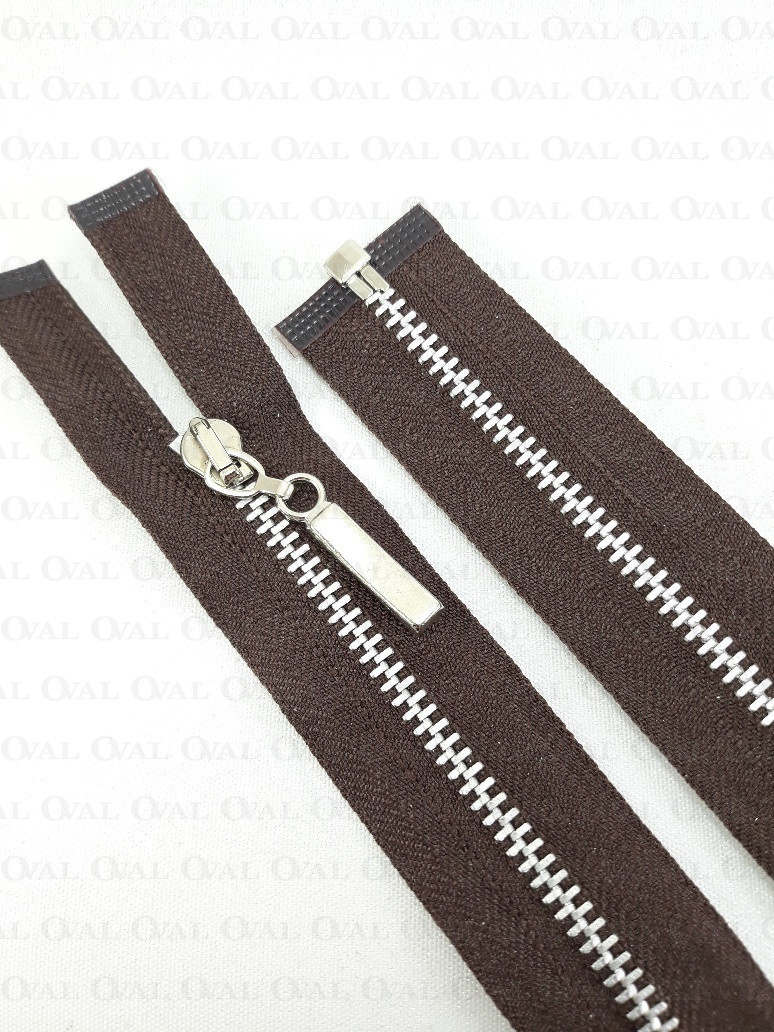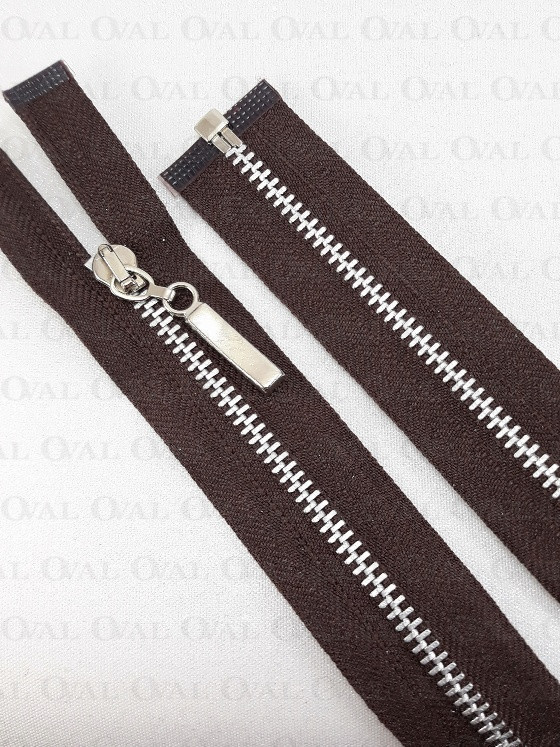 Rozdzielczy zamek metalowy z ząbkami i końcówką w kolorze srebrnym