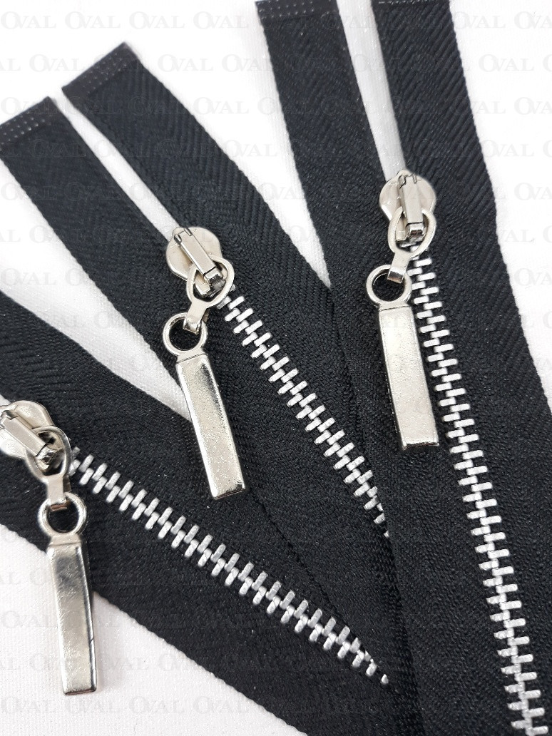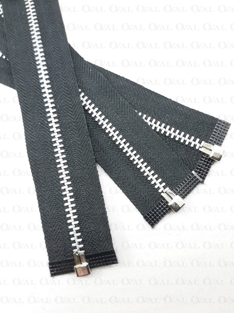 Rozdzielczy zamek metalowy z ząbkami i końcówką w kolorze srebrnym