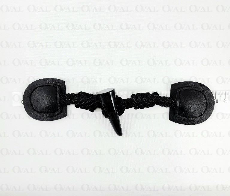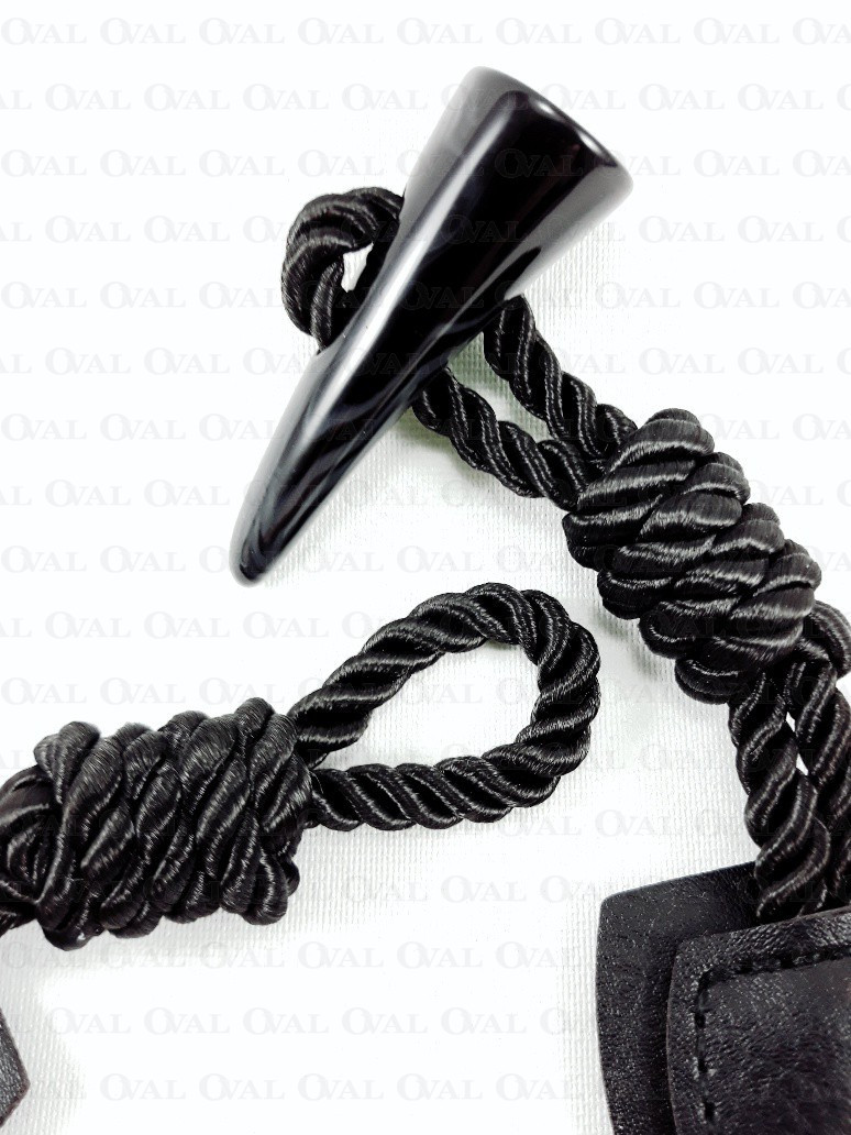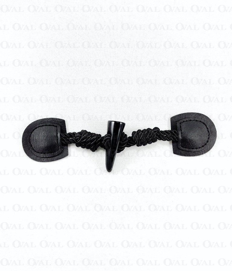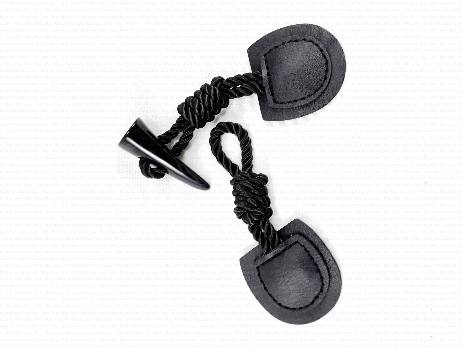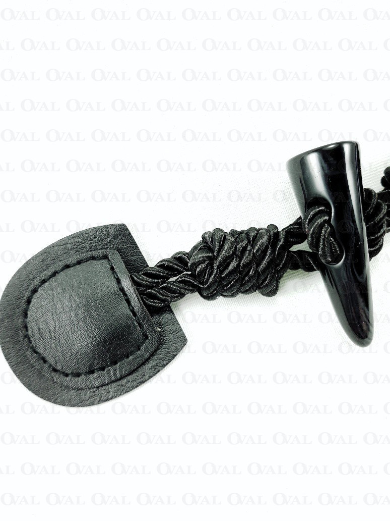 Zapięcie z eko skórką ,błyszczącym czarnym sznurkiem i